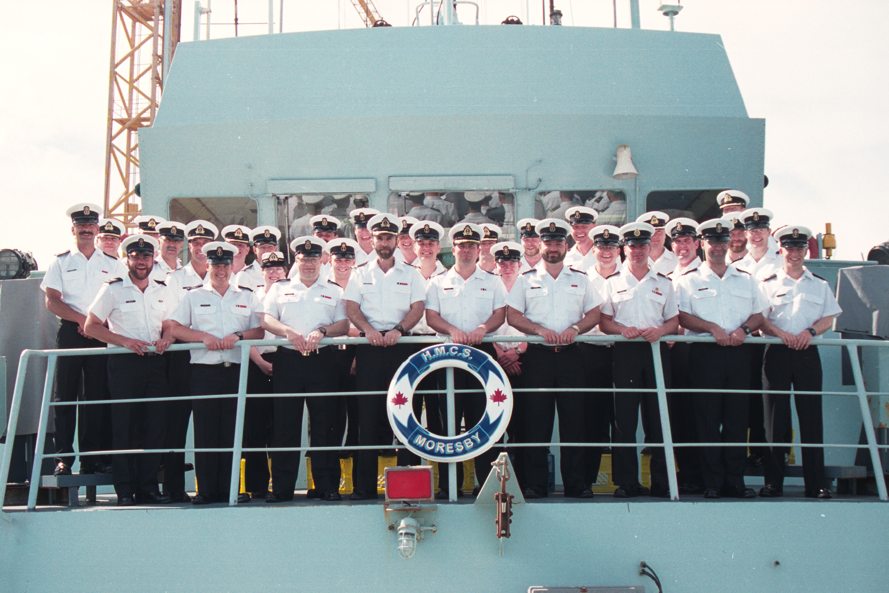 HMCS MORESBY 112 Click on the above photo to view a larger image Photo taken between 01 Oct 1998 - 18 Jun 1999 Click here to view the photo with the crew numbered for identification purposes (7) Walker, B.A. LCdr, CO ** Missing from photo: LS Phil Taylor - photographer. See photo below ** From the collection of Phil Tayor, LS, C.A.F. (Navy) Courtesy of Phil Taylor, LS, C.A.F. (Navy)