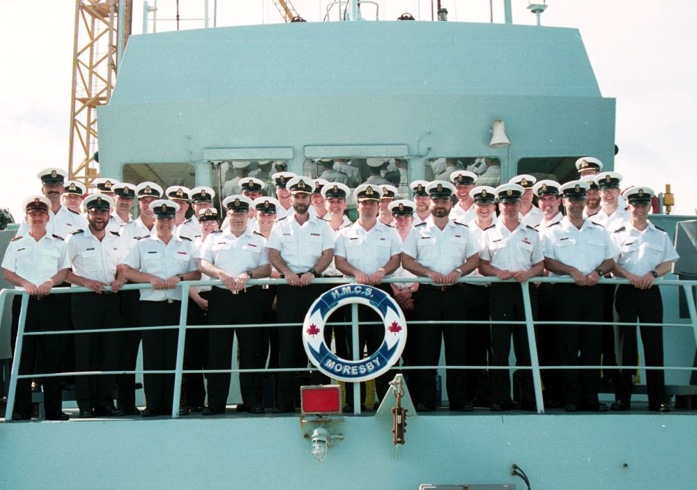 HMCS MORESBY 112 Click on the above photo to view a larger image Photo taken between 18 Apr 1997 - 01 Oct 1998 Click here to view the photo with the crew numbered for identification purposes (10) Larkin, K. B., LCdr, CO From the collection of Phil Tayor, LS, C.A.F. (Navy) Courtesy of Phil Taylor, LS, C.A.F. (Navy)