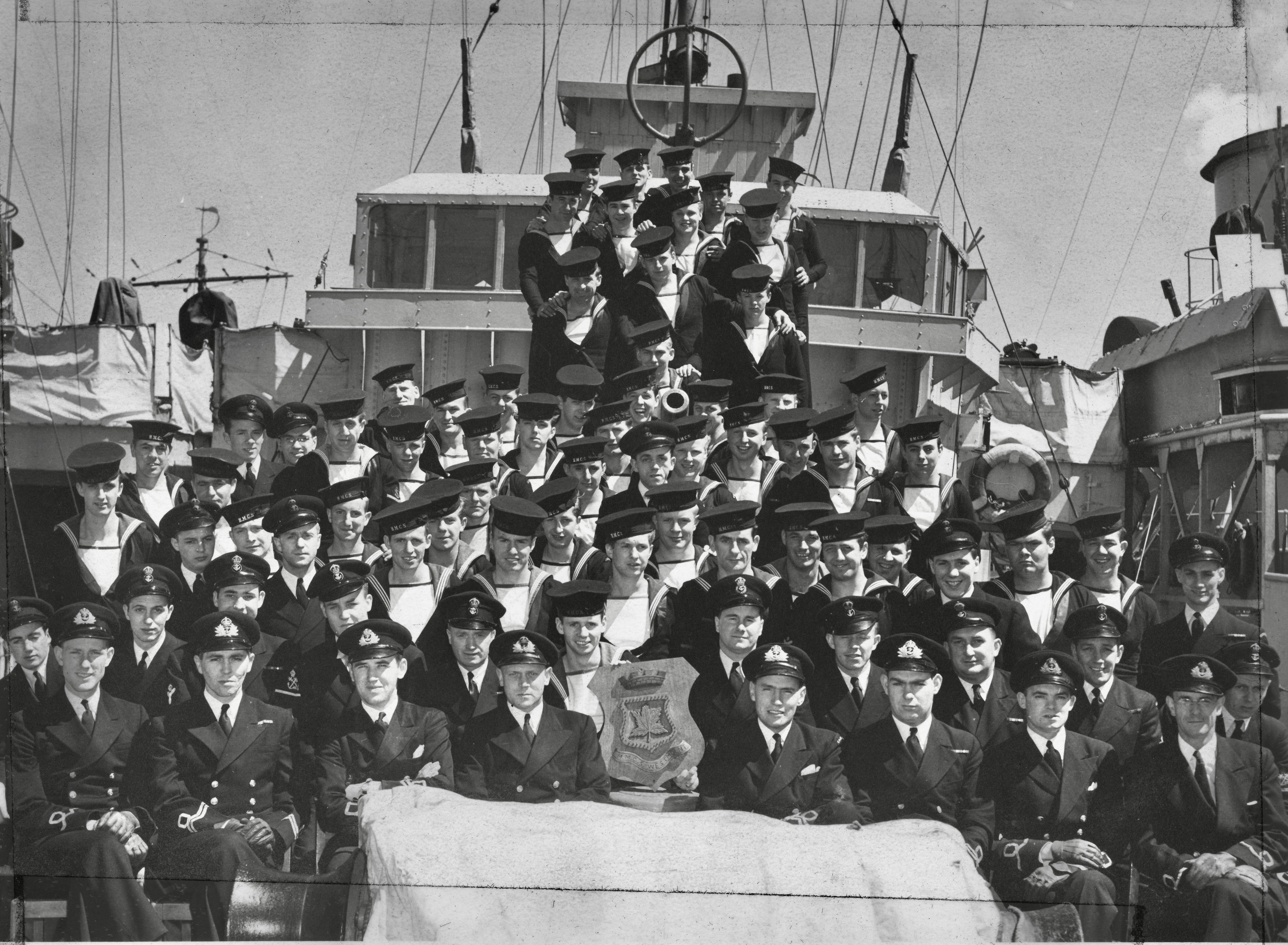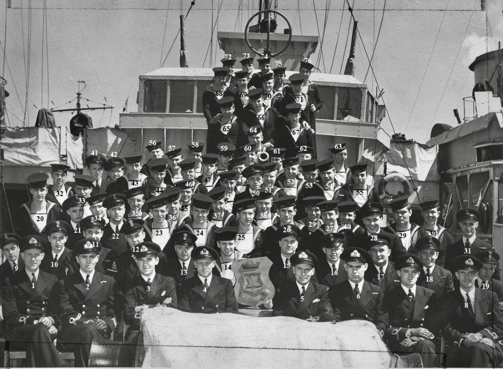 HMCS WESTMOUNT J318 Click on the above photo to view a larger image (54)Ewart, James Lloyd (64) Carpenter, John (76) Huntbatch, George From the collection of John Carpenter, AB, RCNVR Courtesy of Brian Carpenter