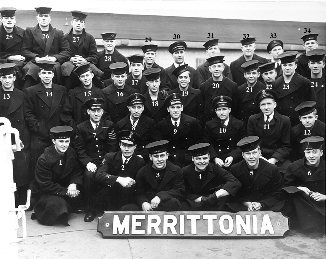 HMCS MERRITTONIA K688 Crew members from Western Canada - circa Nov 1944 - Jul 1945 Click on the above photo to view a larger image