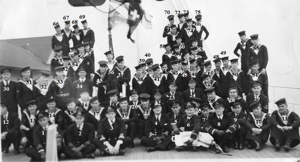(4) Jackson, Reginald, Lt, RCNVR, CO (10) Copland, Hugh James (22) Mills, Frank W., ERA (27) Machan, Harold F., Stoker 1c