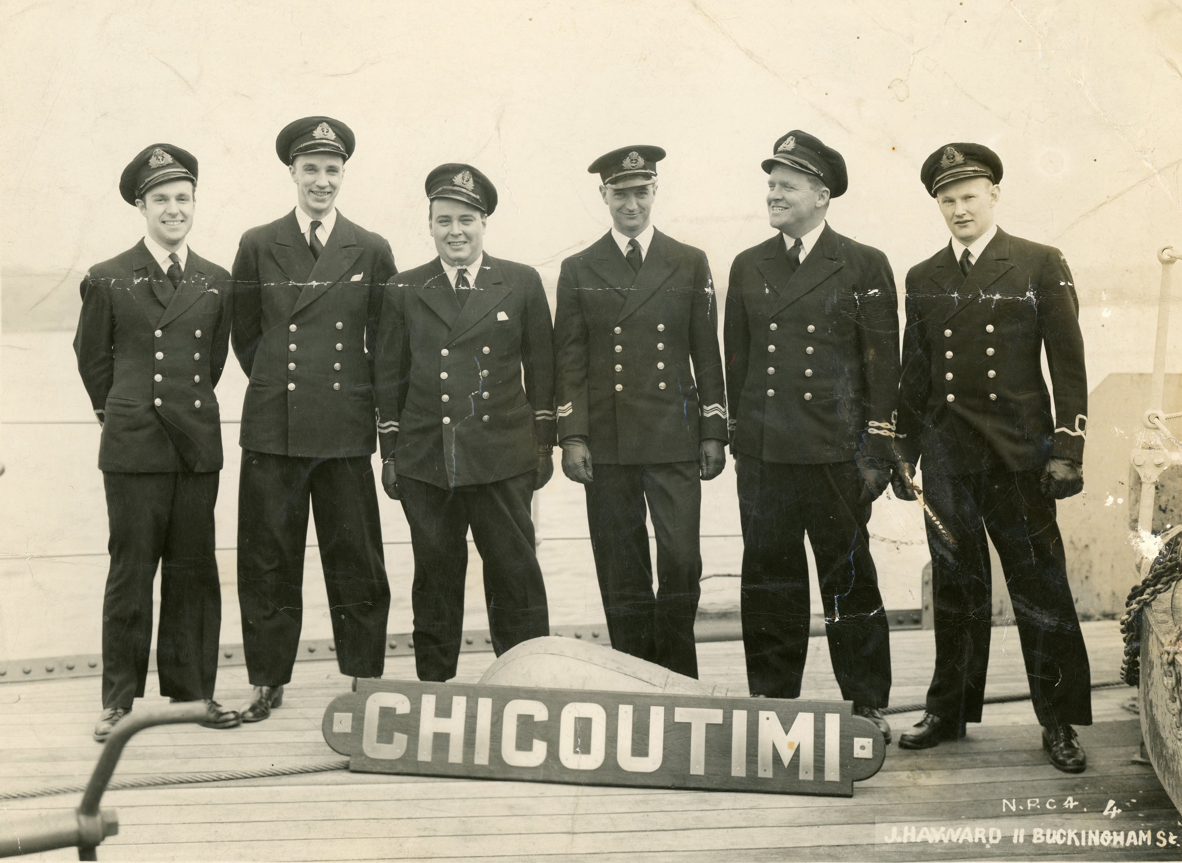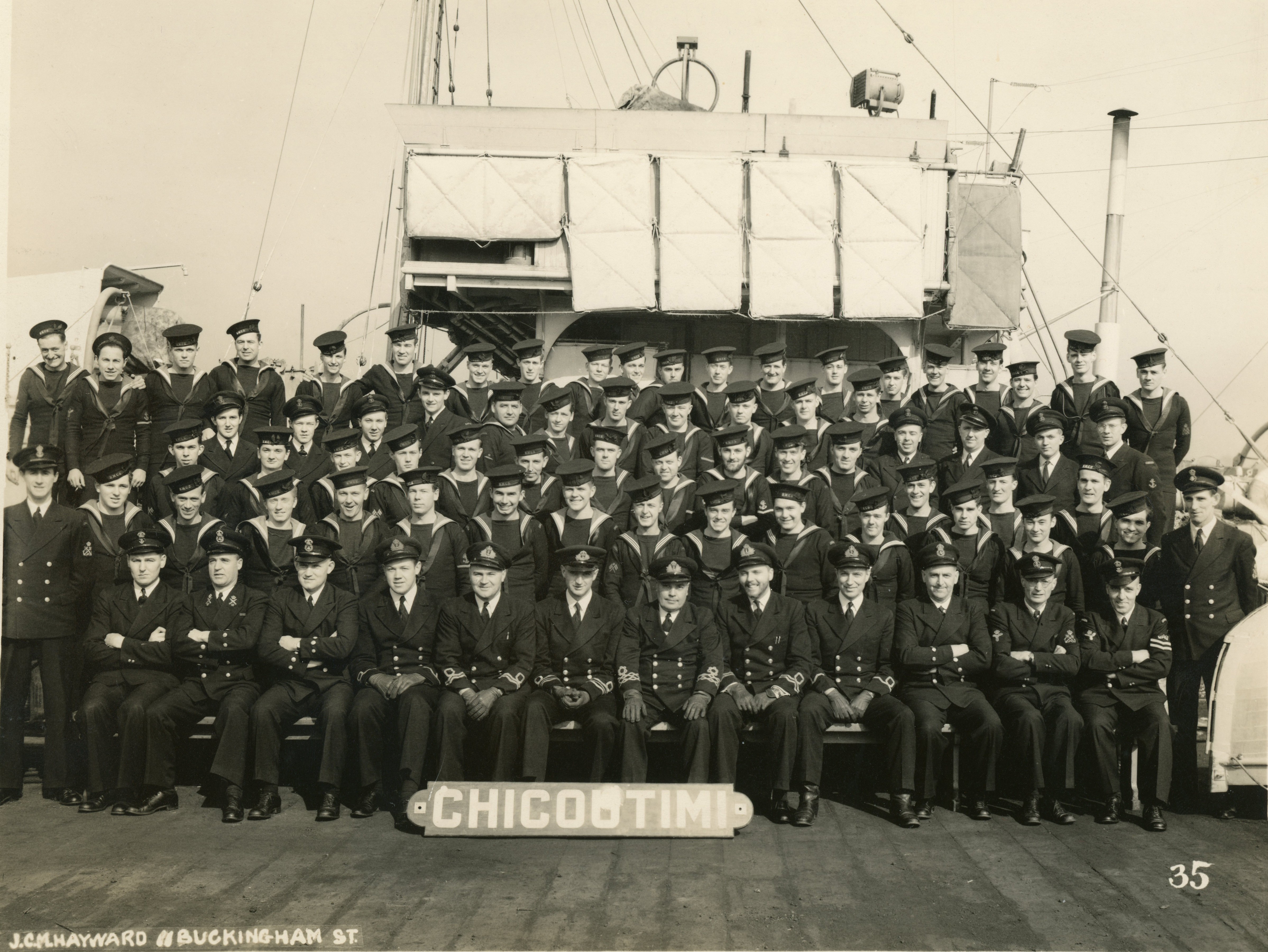 HMCS CHICOUTIMI K156 Officers - undated Click on the above photo to view a larger image Click here to view the photo with crew numbered for identification purposes From the collection of Roy Goforth, Acting Leading Stoker, RCNVR Courtesy of Kevin Goforth