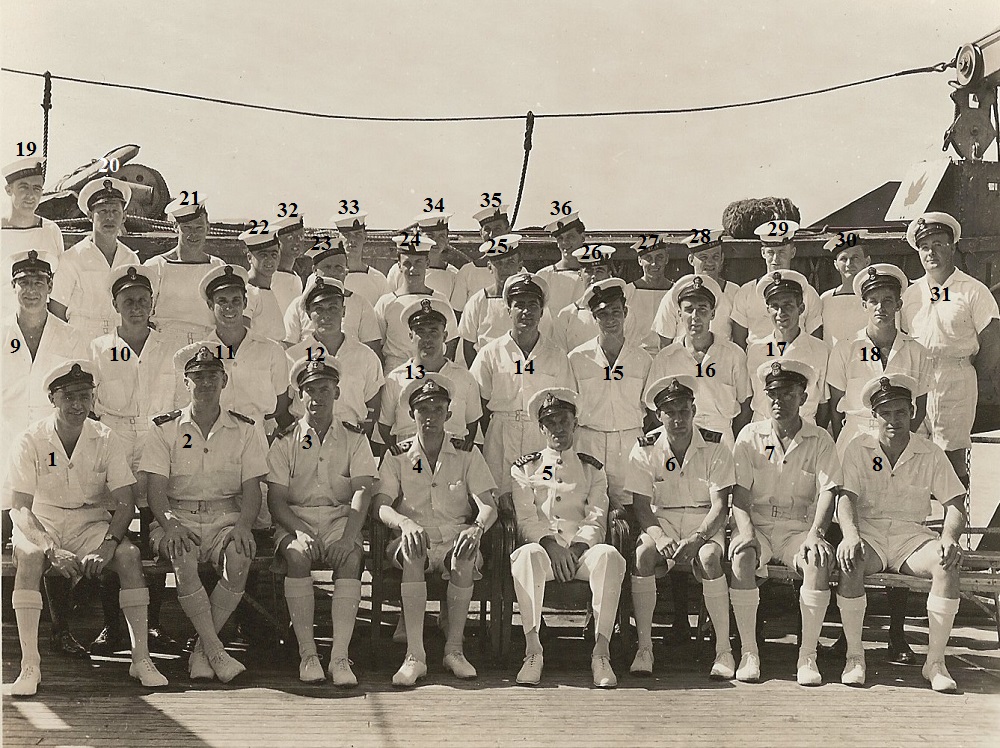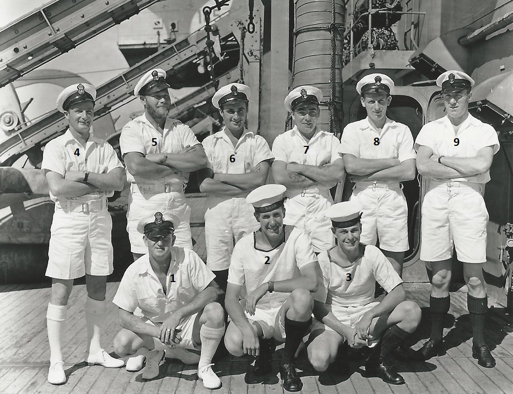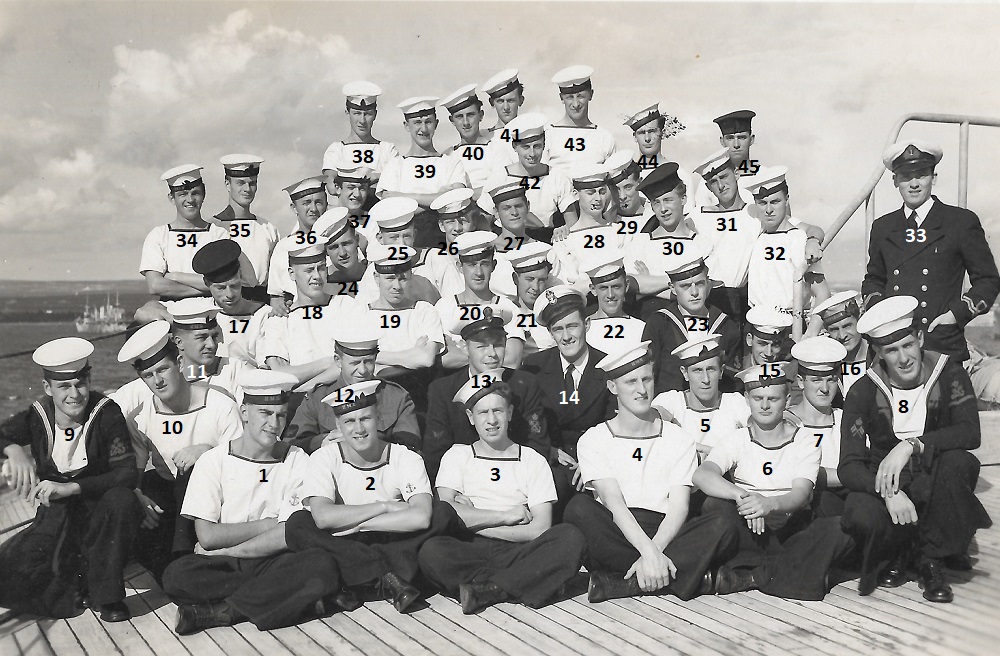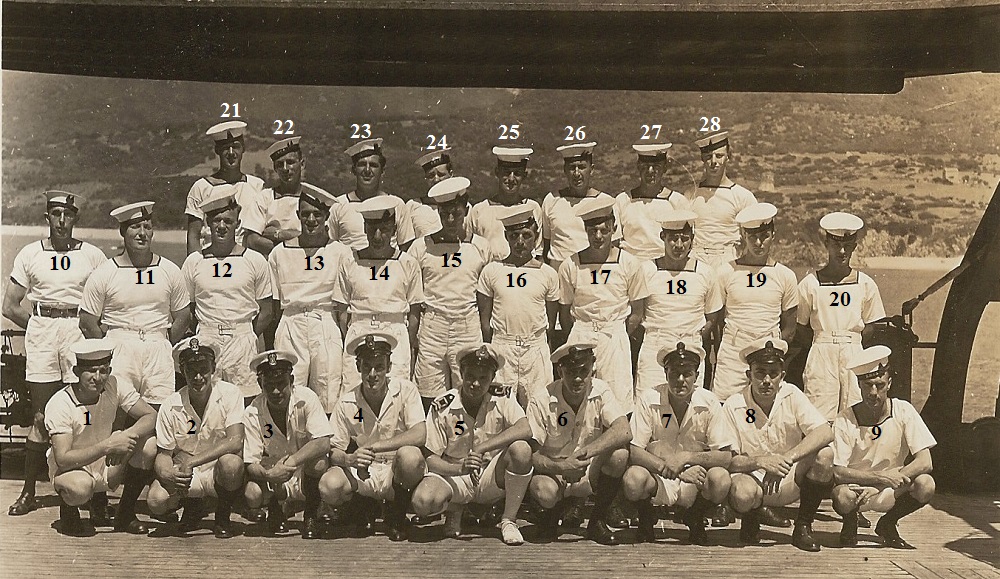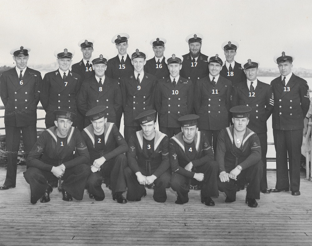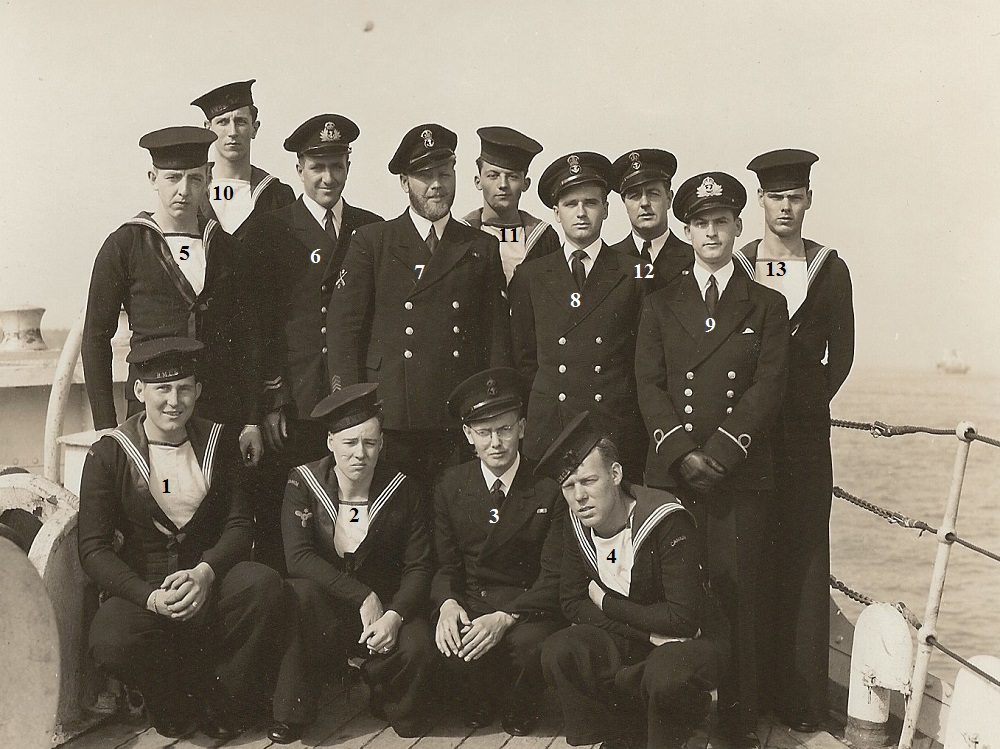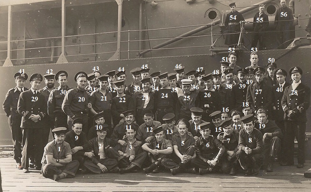(08) Welsh, William PO, Sig (09) Bob Hicks, PO Tel (13) Cleghorn, Ken, PO Tel (33) Stewart, Lt, Signals Officer