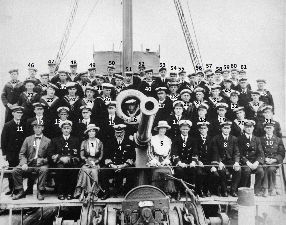 2) Claris Peter / Calice Philip Bourgeois - In the Canadian Navy List for Jun 1917 there is a listing for C.P. Bourgeois as a Mate with a seniority of 11 Jan 1917. The Dec 1917 Navy List has C.P. Bourgeois appointed to HMCS ACADIA. The Jan 1918 Nay List lists Claris Peter Bourgeois, Mate, seniority 11 Jan 1917 as appointed to HMCS ACADIA. In the Mar 1918 Navy List, Claris Peter Bourgeois no longer appears in the Navy List and a Calice Philip Bourgeois appears as a Mate with a seniority date of 11 Jan 1917, appointed to HMCS STADACONA. In the Jun 1918 Navy List Calice Philip Bourgeois is appointed to HMCS ACADIA on 01 Apr 1918. The RCN Ledger Sheets only list a Calice Philip Bourgeois. Its is possible that Claris Peter Bourgeois and Calice Philip Bourgeois as the same person and that there had been an error in his initial listings in the Navy Lists - but there is not enough information available to say for certain. In all photos on this page he will be listed as C.P. Bourgeois.