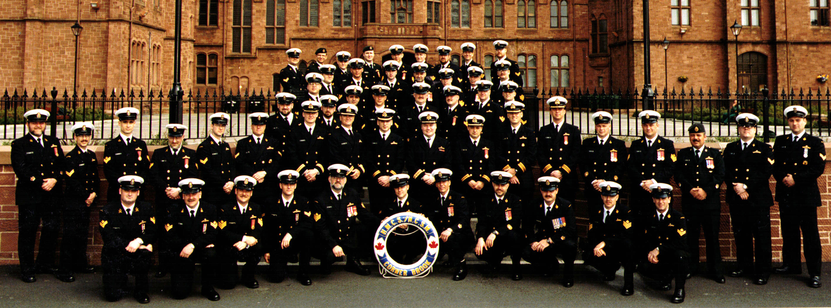 (1) Coffey, Rick (6) Noseworthy, Dave (12) Lesiuk, Dave (13) Chamberlain, Gary (17) Lumsden, Will (20) Fortain, Real (21) Mulholland, Dermot, LCdr, CO (24) Cassivi, Luc (25) Dryson, Dave (31) Willis, Chris (32) Samure, Jason (34) MacDonald, Jeff (35) Ujfallusy, Steve (40) Dumas, Steve (41) Derek, Godin (46) Stewart, Troy