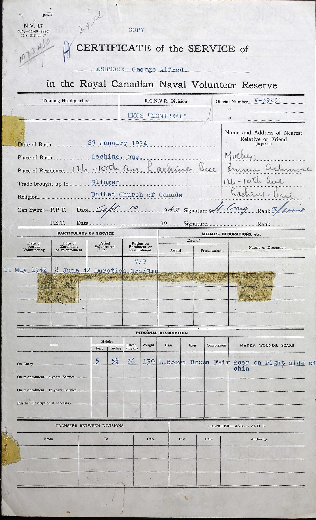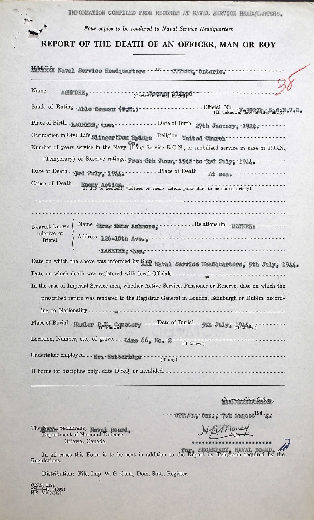 Newspaper article on the death of AB Ashmore (2) Certificate of Service