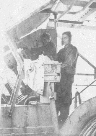 (RM41) Sailors relaxing just aft the funnel on HMCS CHILLIWACK K131 (RM42-RM43) Unknown sailors on HMCS CHILLIWACK holding a depth charge (Webmaster's note: since the MK VII depth charge carried 290 lbs of TNT, it weighed in the area of 400 lbs. It is most likely that these two sailors are carrying the dummy charge used for training on firing the thrower.) (RM44) ailors on the fo'c's'le of HMCS CHILLIWACK K131 (RM45) Whaler from HMCS CHILLIWACK K131 under sail