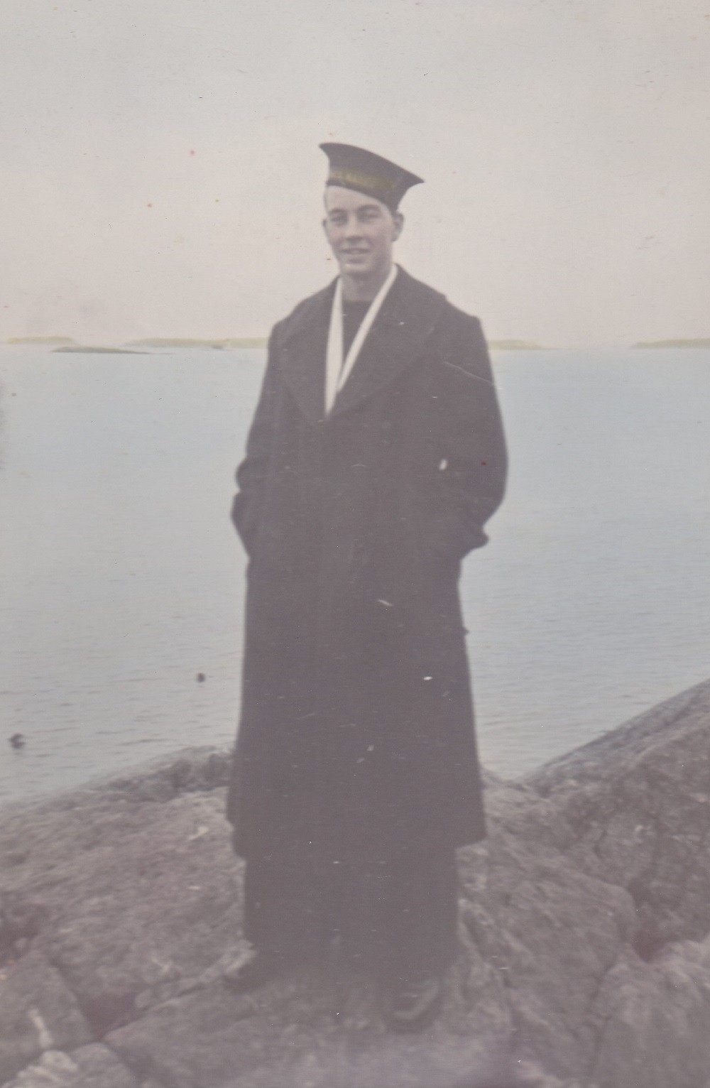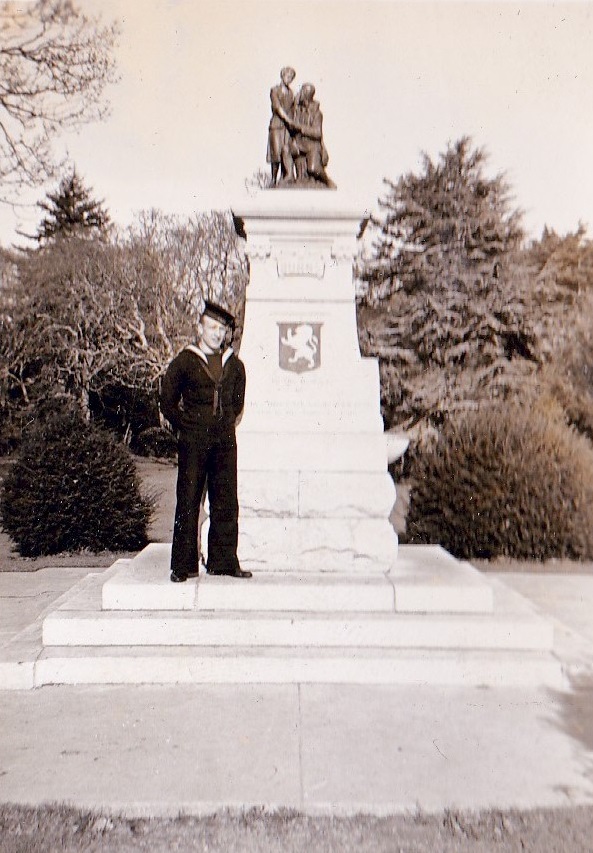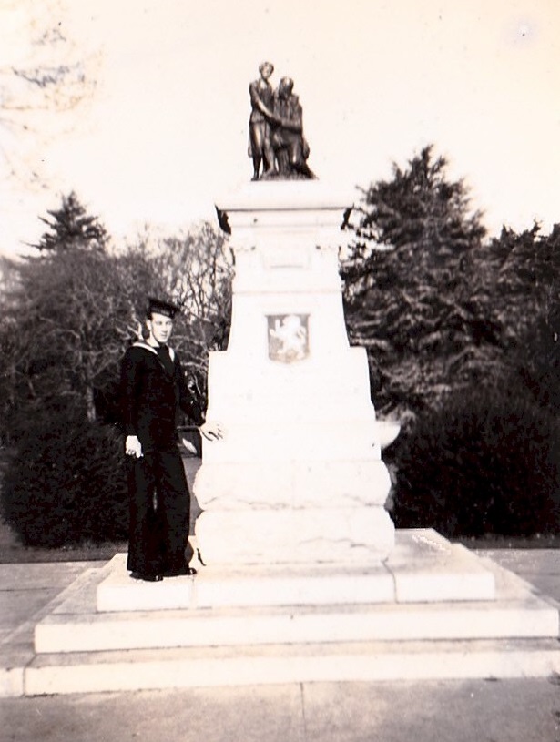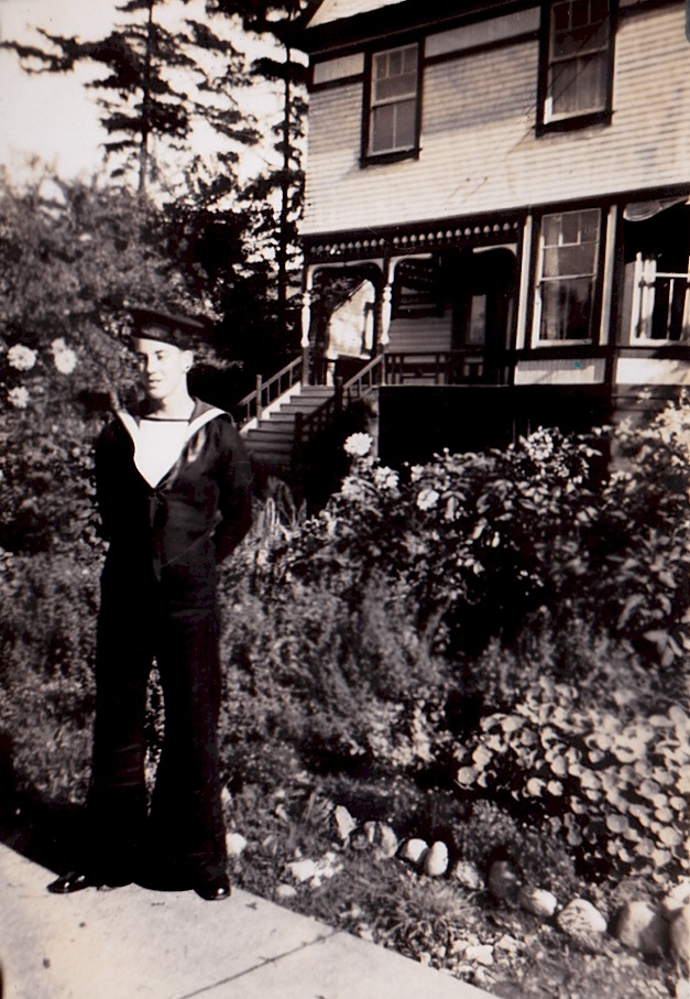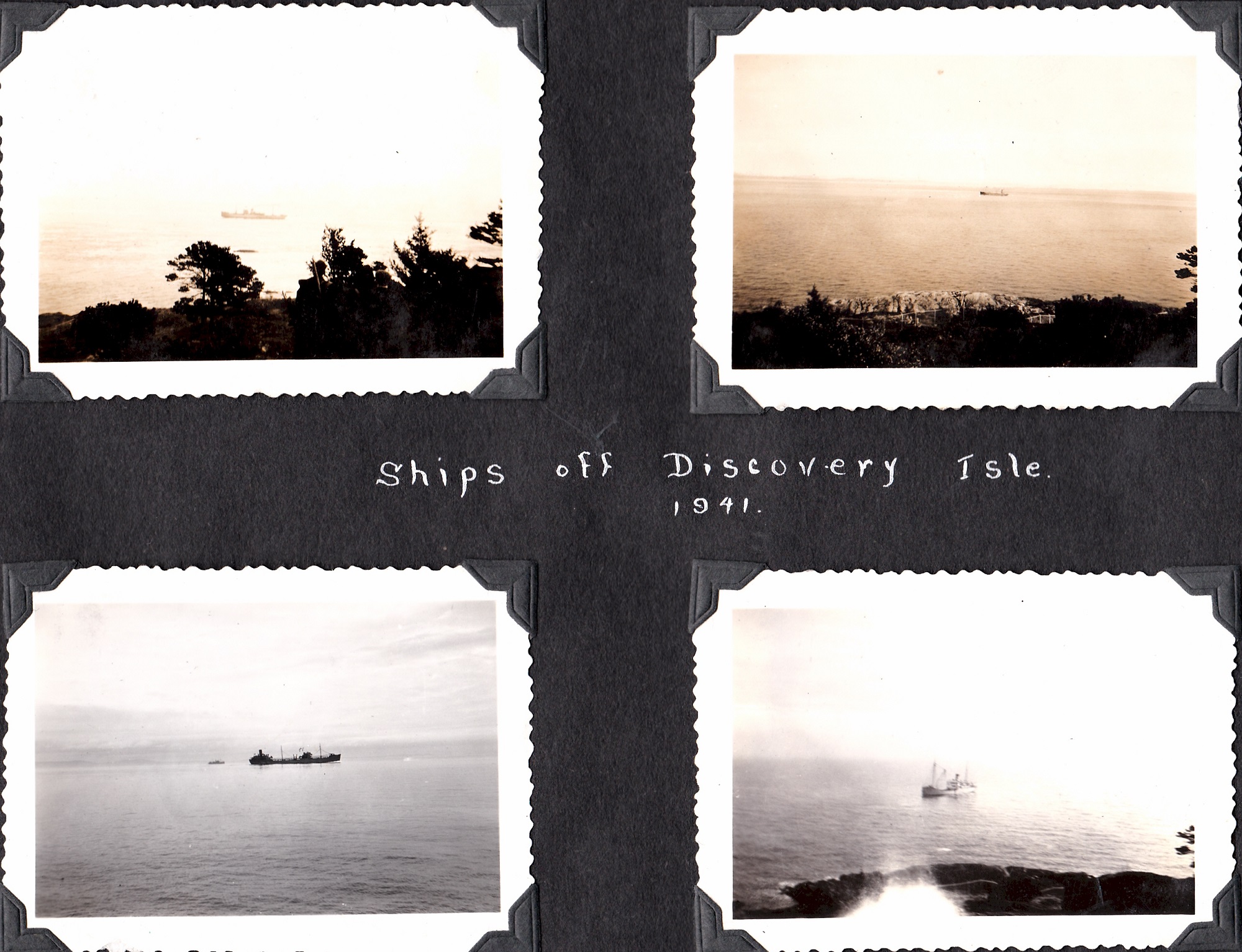 (120) Mac  (121) Unknown sailor  (122) George Huntbatch and Ralf Dodds  (123) Scott, Davies, Burton, Killeen, Pollock, Shannon, Romanchuck  (124) Ralf Dodds, Morton and Mac  (125) Ships off Discovery Island  (126) Ship's off Discovery Island and Victoria as seen from Discovery Island  (127) Inside cover to George's photo album