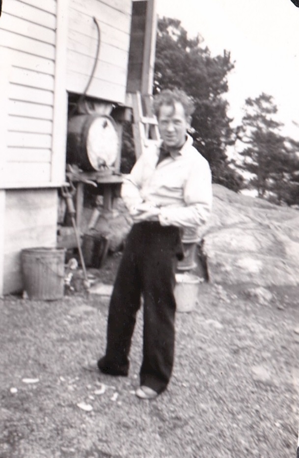 (104-106) Discovery Island Lighthouse, BC  (107) Mary and Percy Pike, Discovery Island Lighthouse Keeper's.  Percival C. Pike (Percy) was the senior lighthouse keeper on Discovery Island from 1933 until 1955  (108) The Pike's boat  (109) P.W.S.S. (Port Wave Naval Radio Station) call sign CKE on Discovery Island. Port Wave operated on Discovery Island during WW2   (110) Ross Gibson & Jack Small  (111) Beaumont's Garden