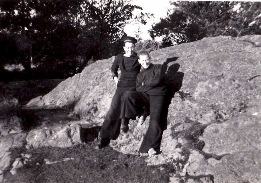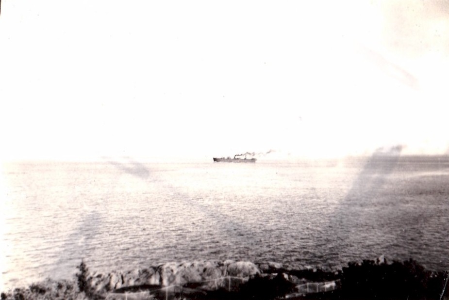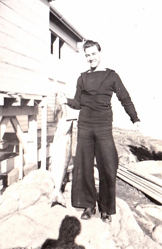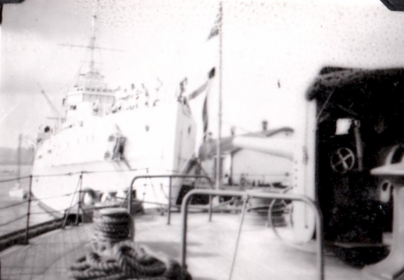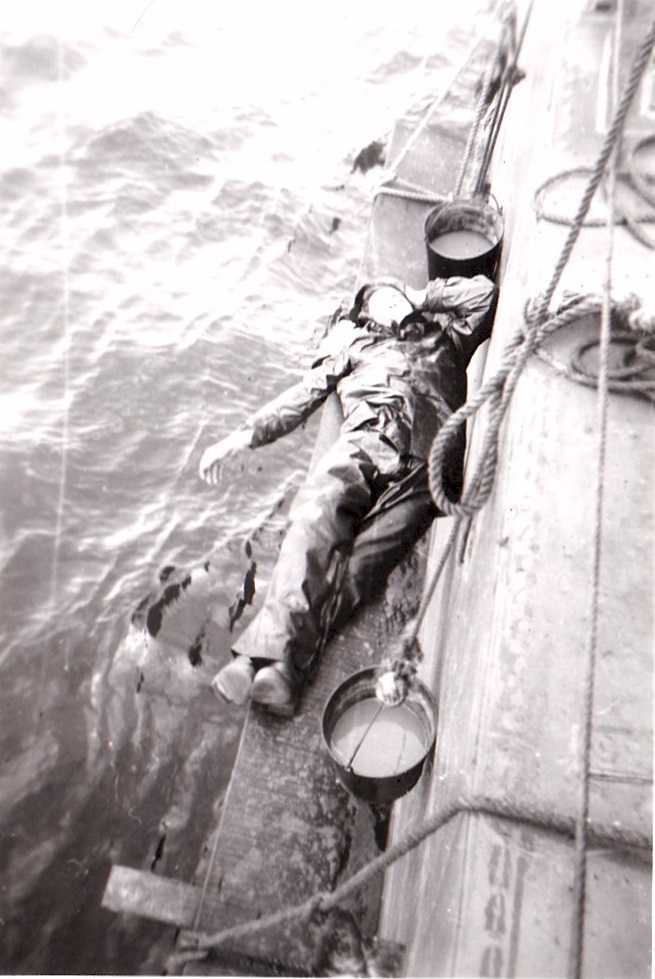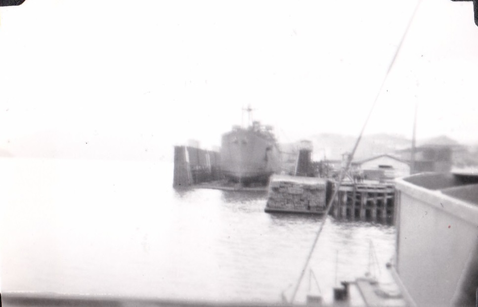 (56 & 57) RMS Queen Elizabeth arrives at Esquimalt  (58) Burial at sea - unknown sailor / unknown ship  (59) unknown ship in drydock in Esquimalt  (60) HMCS Prince David  (61) Sailors on unknown ship. Note that the sailor on the right is wearing a HMCS Givenchy sweatshirt  (62) First Nations graveyard somewhere in BC  (63) unknown sailor by totem pole somewhere in BC