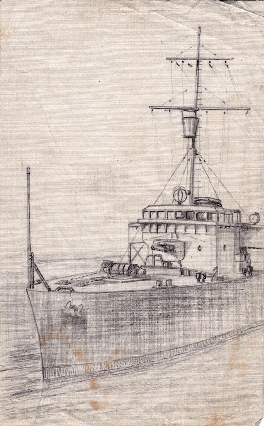(64) unknown sailor on ships Carley float  (65 & 66) sailors on unknown ship's boat  (67) Unknown corvette  (68) Unknown sailor on guard duty  (69) unknown sailor taking a break  (70) Sketch of a minesweeper  (71) Decoration Day 1941