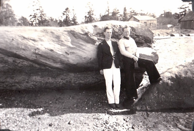 (96) George Huntbatch at Beacon Hill Park  (97) group of sailors at Beacon Hill Park  (98) Les Newell at Beacon Hill Park  (99) George Huntbatch at Beacon Hill Park  (100) Freighter in the Haro Straight  (101) Black fish or Killer Whales  (102) Log boom  (103) Haro Straight