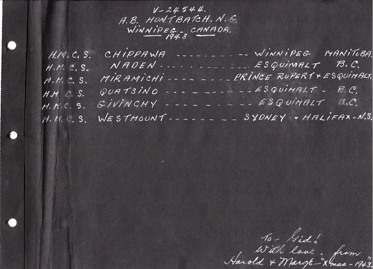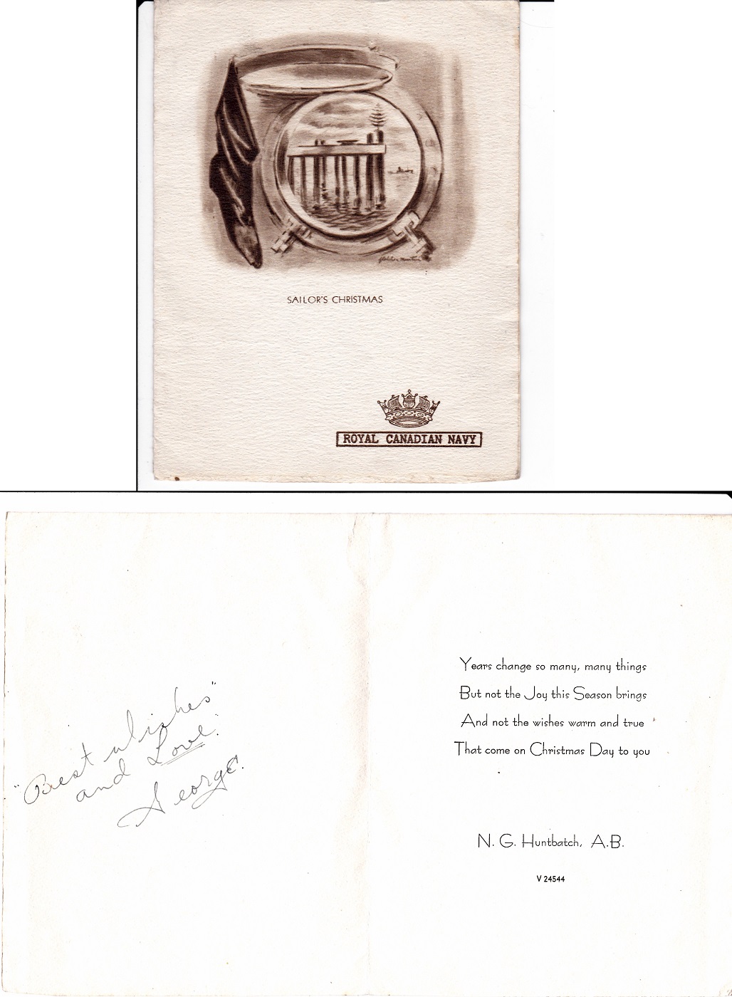 (NGH148) HMCS WESTMOUNT Christmas card from George Huntbatch to his parents