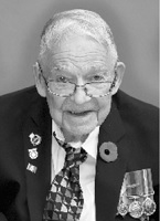 BOWMAN, Donald Aden - Following a stroke, Donald passed away quietly on Friday, November 23, 2018, in Regina. Donald was born April 22, 1922, in Saskatoon, to Aden and Lillie Bowman. His parents were both city councillors and the family owned Bowman Brothers, a large automotive wholesale business. After high school, where he excelled in mathematics, Donald attended the University of Saskatchewan where he studied Engineering and met his wife Muriel. They were married in 1943 and in 69 years of marriage they were only separated during the war years. Donald served in the navy as a Second Lieutenant on HMCS Edmunston, a Canadian Corvette ship which was part of the convoy guarding merchant ships to and from the United Kingdom. In the post-war years, Donald worked with the family business in Saskatoon, North Battleford and later Regina, until he left the firm to purchase two farms in the Qu'Appelle Valley and settle in Lumsden. He and Muriel were active members of the community and the United Church there. Near Craven, Donald built a livestock/feedlot operation which became a model of innovation and humane design. From the early 1960s until the mid-1970s he also developed a specialty advertising business which had national clients. When their four children had grown, Don and Muriel relocated to Regina where they remained active socially and in their Christian faith. Even in retirement, Donald, always a salesman, travelled throughout the west and made a lot of friends in the Prairie Provinces. He wrote a book about his time at sea. In 2013 and again in 2016, Don, accompanied by family, attended commemorative services for the Battle of the Atlantic in Londonderry, Northern Ireland, where he forged numerous friendships with members of the Royal Naval Association. He ended his years in the Veterans' wing of Wascana Hospital where he was unfailingly cheerful and much-loved by the angelic staff. There were disappointments and reversals of fortune in his life, but he never shrank from them. He turned an open face to the challenge and acted with optimism, honesty, good nature and fairness. He was, by any standard of measurement, a good man. Donald was predeceased by his precious wife, Muriel, and son, David, and is survived by children Brian (Lorna Forsyth), Cathy, Tammy (Kim Calfas), daughter-in-law Arlyn Bowman, grandchildren Kelcy, Dan, Joe, Chris, Stephie and numerous great-grandchildren and extended relatives and friends. The family wishes to thank the staff and volunteers of Wascana Hospital Veterans' Unit 3-5 for the care and comfort they gave him during his time there and especially in Don's final days. A celebration of Don's life will be held at Speers Funeral Chapel, 2136 College Avenue, Regina, SK on Sunday, December 9, 2018 at 1:30 p.m. Donations in Don's memory in honor of his wartime service may be made to HMCS Sackville, Canadian Naval Memorial Trust, P.O. Box 99000, Stn Forces, Halifax NS, B3K 5X5, http://www.canadanavalmemorial.ca or the Royal Canadian Legion, Regina Branch #1, 1920 Cornwall Street, Regina, SK, S4P 2K2. (Regina Leader-Post 01 Dec 2018)