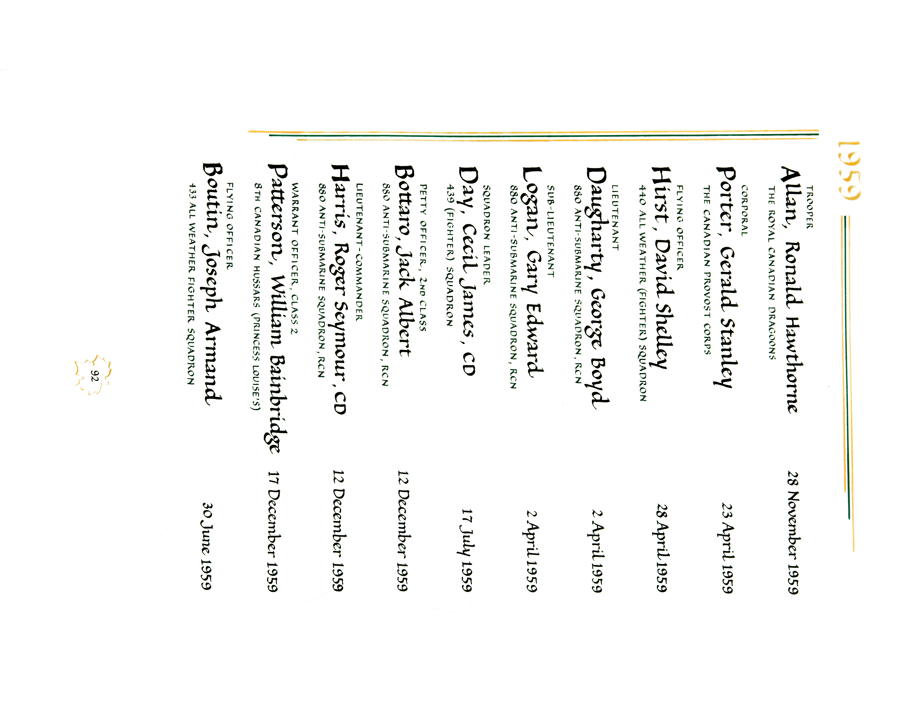 BOTTARO, Jack Albert, PO2, RCN, died - 12 Dec 1959, 880 Anti-Submarine Squadron / HMCS BONAVENTURE - Son of Peter and Lily Bottaro of Toronto, ON; husband of Anita Helen (nee Verriere) and father of Kenneth and Keith Bottaro. He enlisted in the RCN on 14 Dec 1953, Toronto ON. PO2 Bottaro died when the Tracker he was crew of crashed shortly after taking off from HMCS Bonaventure. His body was not recovered.