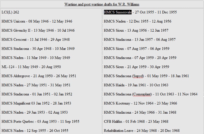 William served in the RCN from 08 May 1946 to 20 Dec 1968