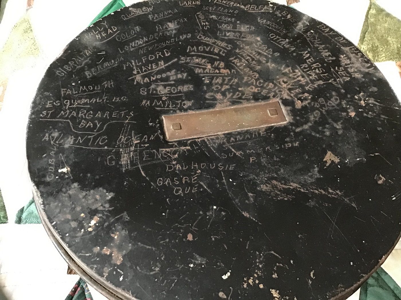 Hugh scratched the names of places he was at into the lid of his pusser hat can.
