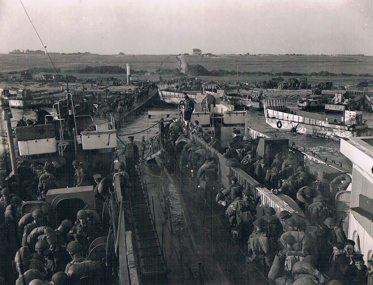 (16) Unknown vessel, Utah Beach, Normandy, 1944 (17) Utah Beach, Normandy, 1944 (18) LST loading German POWs, Utah Beach, Normandy, 1944 (19-20) The Invasion Fleet crossing the English Channel, D-Day, 06 Jun 1944 - DND/RCN photos (21) France, British Sector, June 1944 - DND/RCN photo (22)Jack Griffin, HMCS York, Dec 1942 (23) Sig Willcox in front of the "Pavilion", Bournemouth, England Aug 44