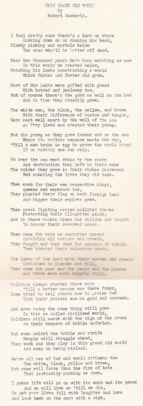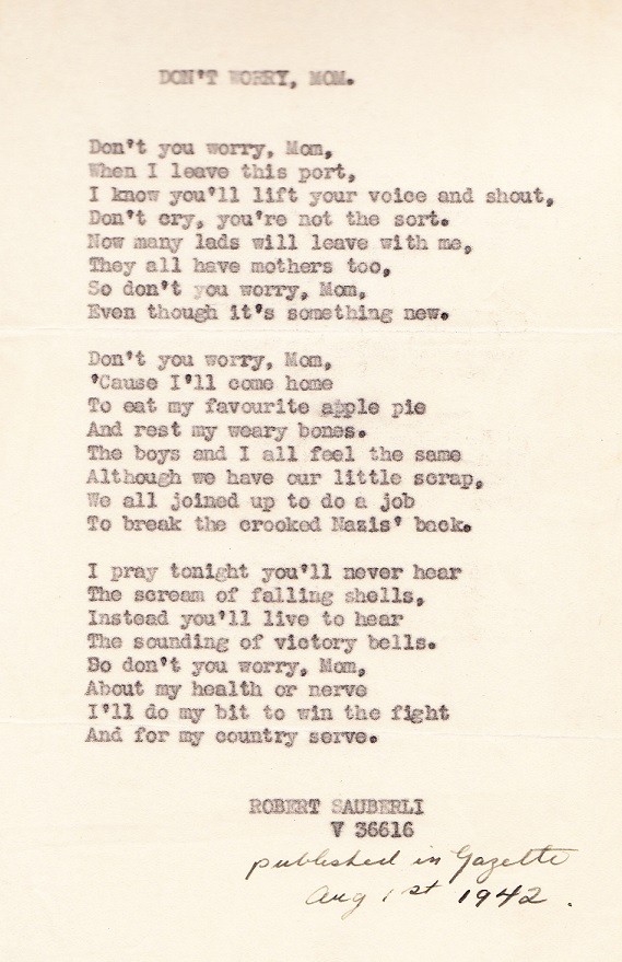 (1) Certificate of Discharge (2-7) Poems written by Robert Sauberli