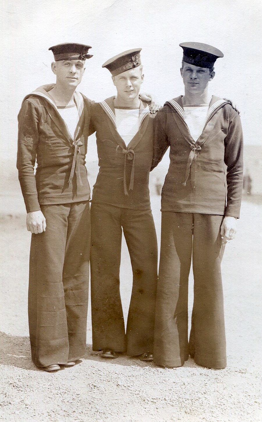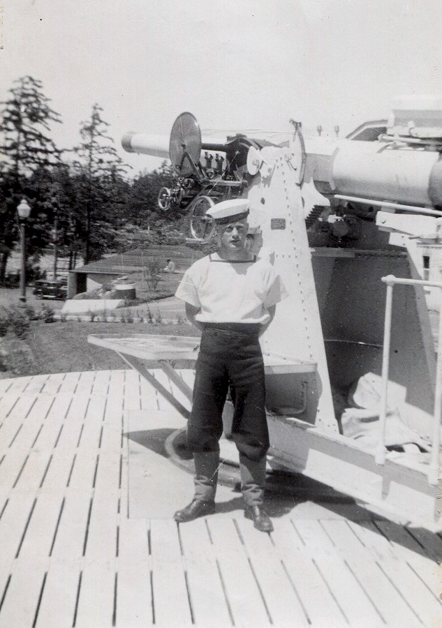 (JS05) Jack Sedgwick (JS06) Unknown group photo - background appears to be dockyard in Esquimalt (JS07) Jack Sedgwick (centre) and unknown friends (JS08) Jack Sedgwick (left) with Royal Marine - possibly at HMS Ferret (JS09) Jack Sedgwick by gun battery - location unknown but believed to be in BC