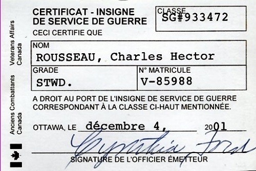 (CR01) Steward Rousseau (CR2) Certificate of Service (CR03-CR05) Steward Charles Rousseau - taken during the war