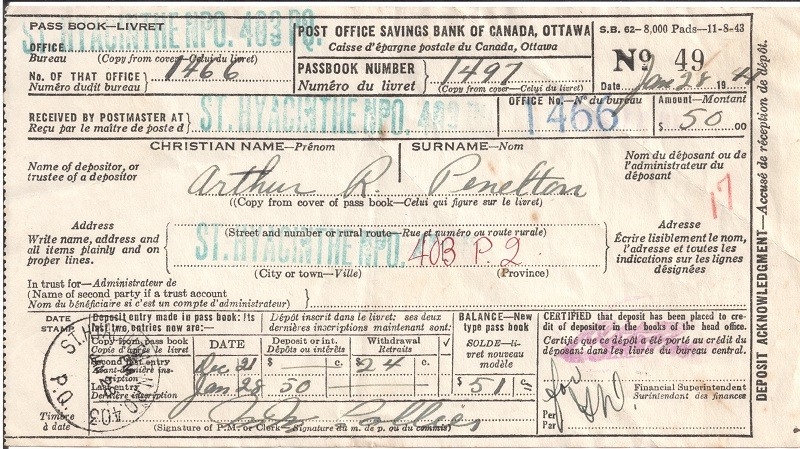 Arthur took his trade training for Telegraphist at St-Hyacinthe, Quebec