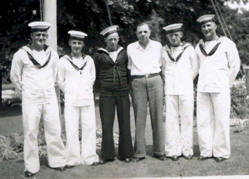 (8) Sailors in the photo: B. Albert, Sandy Milne, Chew Block, Burt Peer, Earl Trotter (9) L-R: Albert Osborne, Sandy Milne, Chew Block (10) L-R: Sandy Milne, Albert Osborne, Harry Thompson, Earl Trotter, Chew Block, Burt Peer (11) Albert Osborne