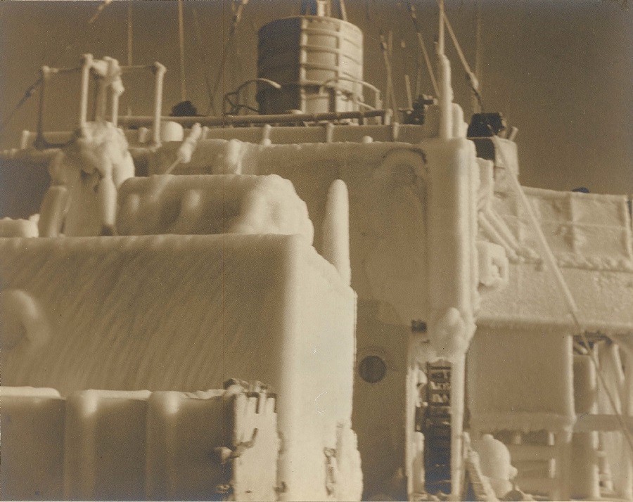 (1) Portrait of Tony Osburn (2) Certificate of Discharge (3) Unknown ship iced up