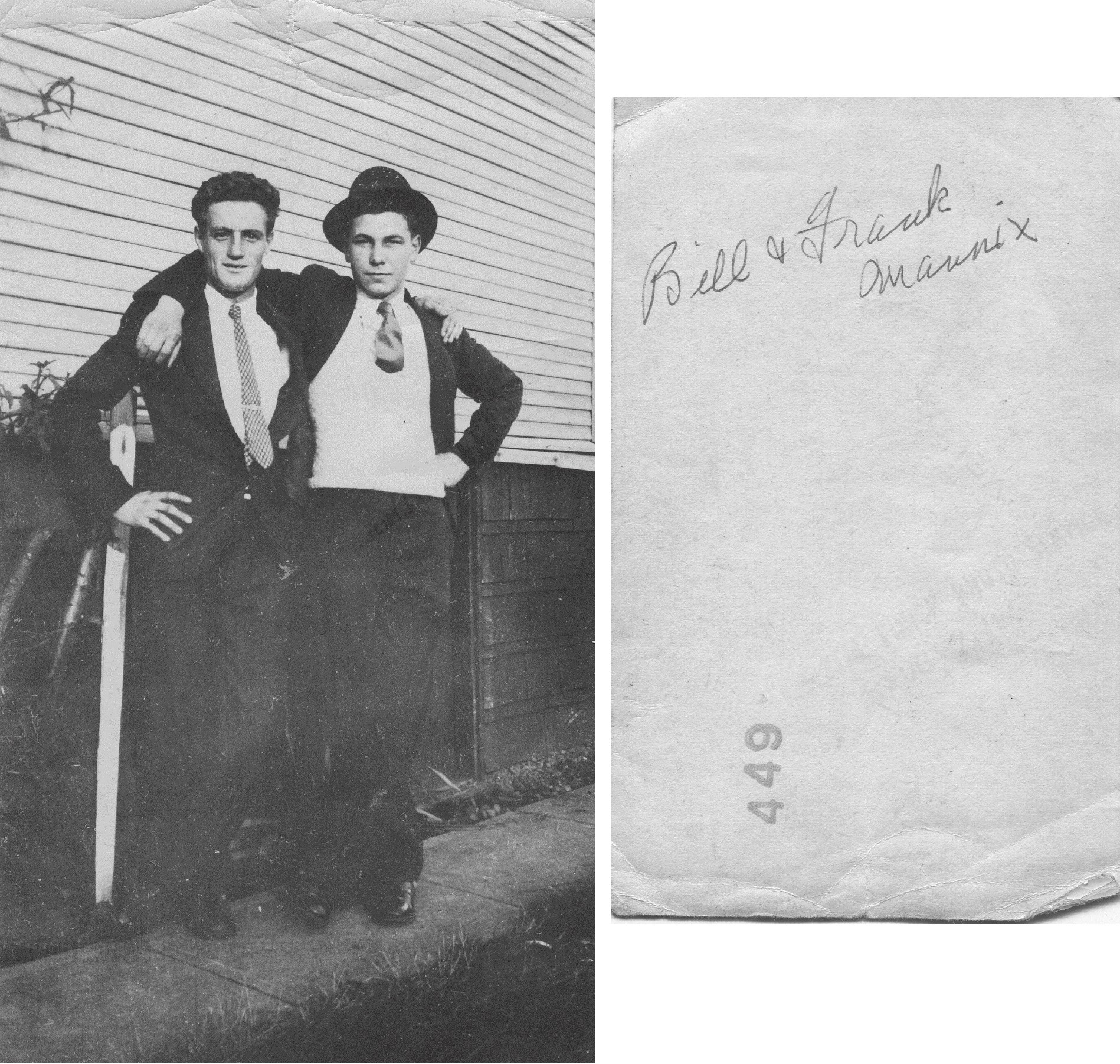 (7) Bilk and his wife Bea (8) Bill Gagnon - part of HMCS Naden's Soccer team - 1938 (9) Bill Gagnon (left) and Frank Mannix (10) L-R: Bill, Ed and ?? at Halifax c1939 (11) Bill Gagnon (right) and Ed at Halifax c1939