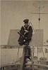 (1) Portrait of Tom Hicking (2) Tom Hicking on his wedding day (3) Tom sitting on the gun on a Fairmile (4) Tom with machine gun ammunition