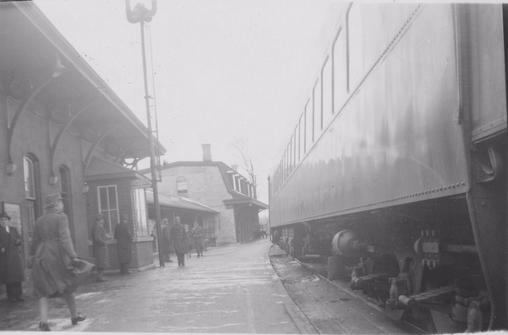 (10-15) Ontario to Nova Scotia - Train Station, Campbellton, New Brunswick - 01 Mar 1943 "The train left Montreal Sunday evening and we were able to sleep on the train"