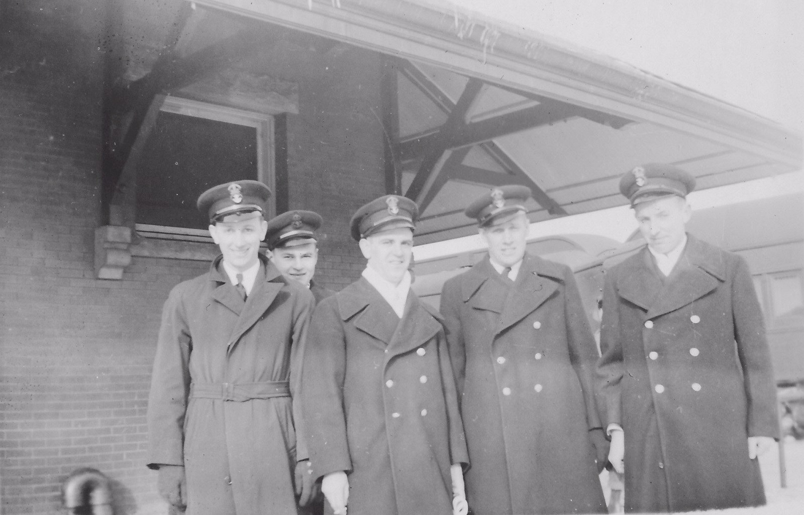 (10) Train Station, Campbellton, NB (11) Bill Christie, Jim Simpson, Jack Macintosh, Ted Squires & Truman Stephens (12) Ervin Hall (13) Jimmy Simpson (14) Stevy aka Truman Stephens (15) Captain Paul - after arrival in Halifax