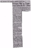 (JF01) Article on the death of L/Tel McEwen, Tel Comish and Tel Friend - The Vancouver Sun - Mar 1945 (JF02-JF03) Certificate of Service - pages 1 and 2 (JF04-JF05) Conduct Sheet