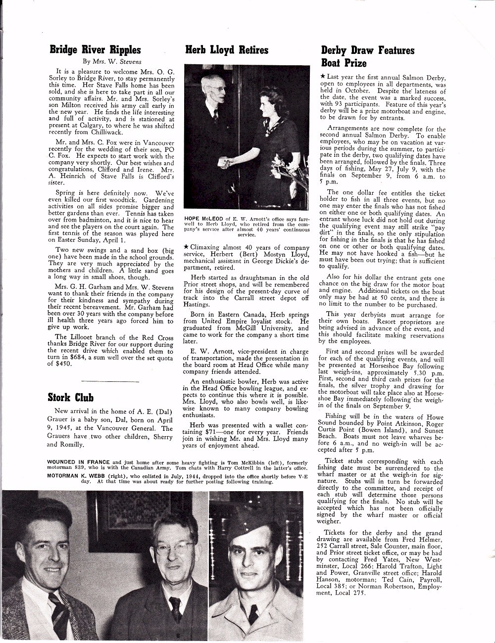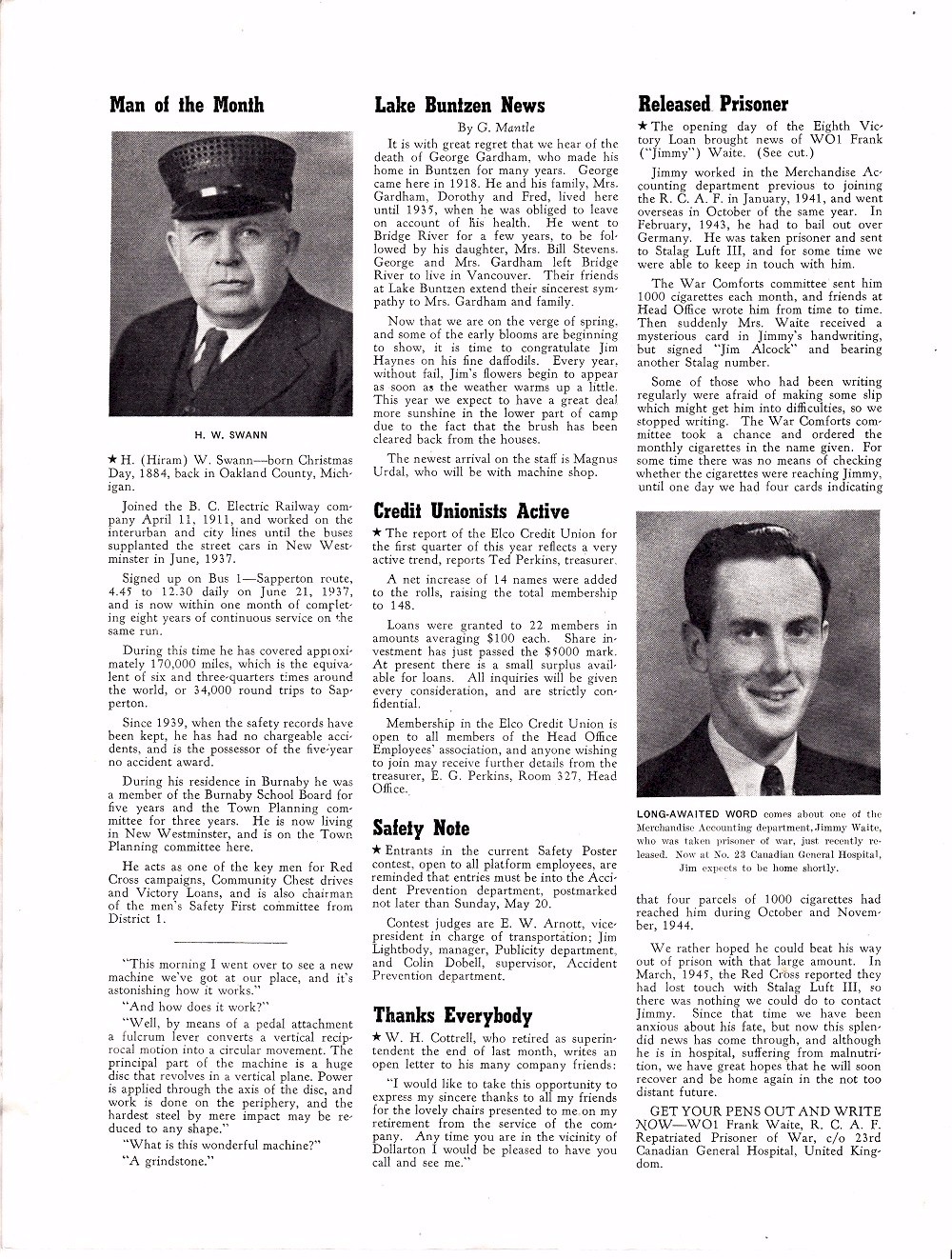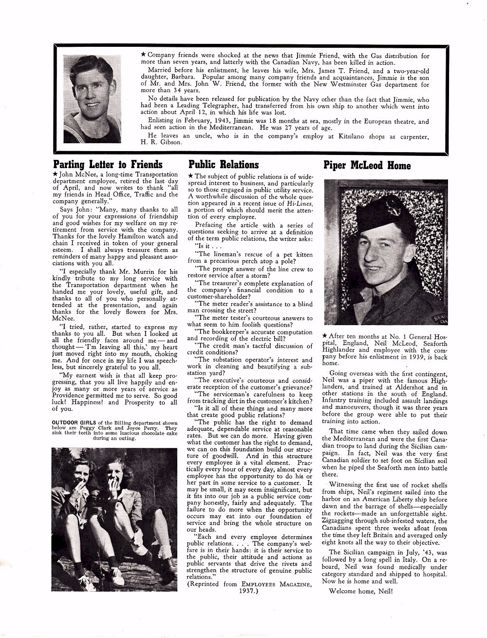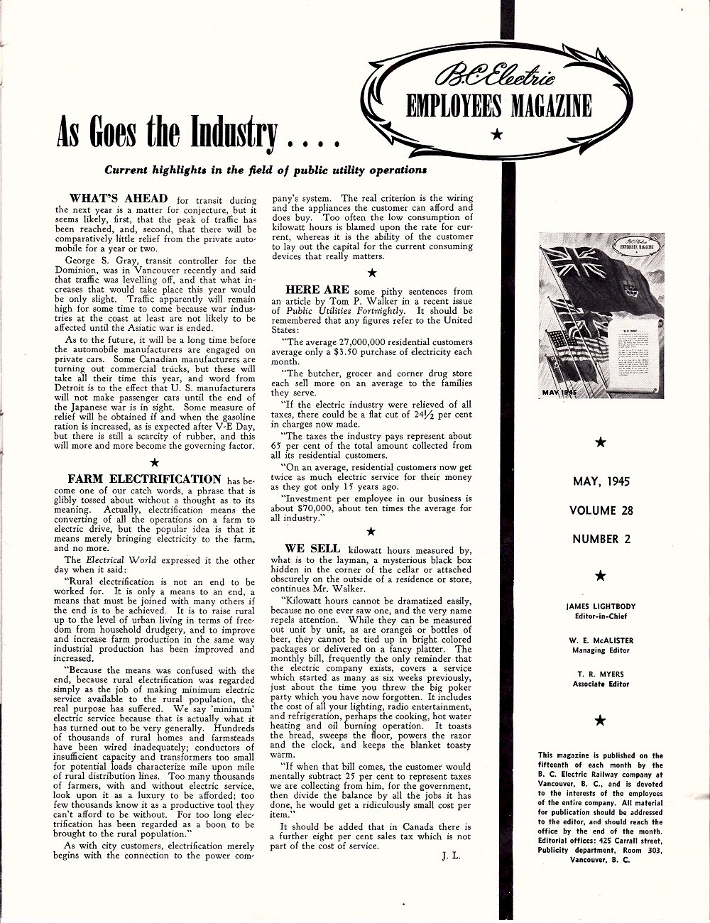 B.C. Electric Employee's Magazine - May 1945 Page 13 contains a write-up on James Friend