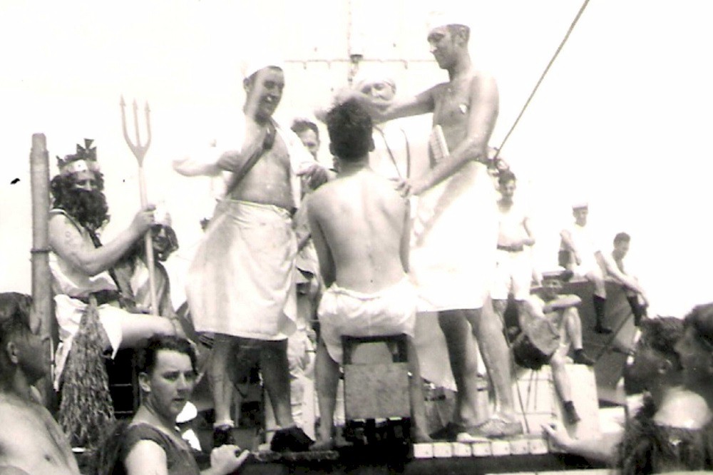 (MCF005) Sailors in 9 Mess, HMCS FRASER H48 - Malgwyn Ford on right with no shirt (MCF006) Crossing the Equator on HMCS FRASER H48 - date unknown (MCF007) HMCS FRASER H48 covered in ice (MCF008) LTO Malgwyn Ford, HMCS FRASER H48, San Diego 1938 (MCF009) HMCS FRASER's mascot - date unknown Photos courtesy of Jerry Ford