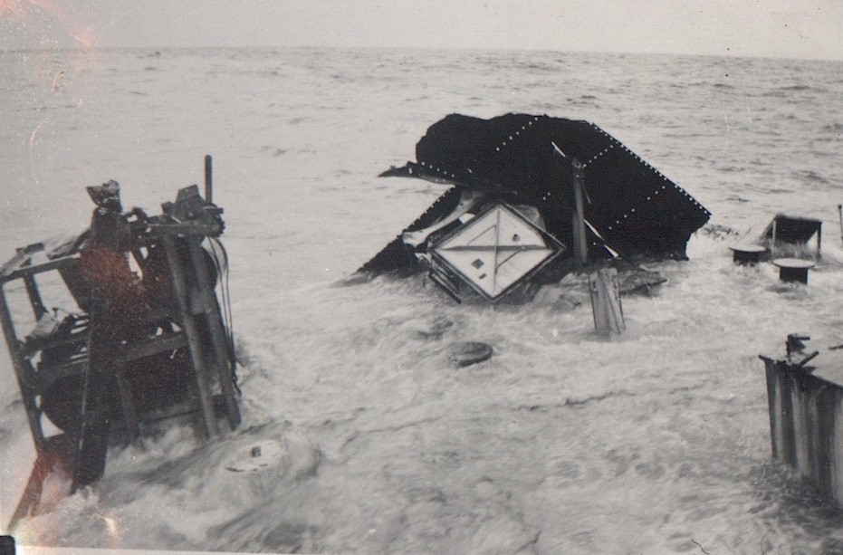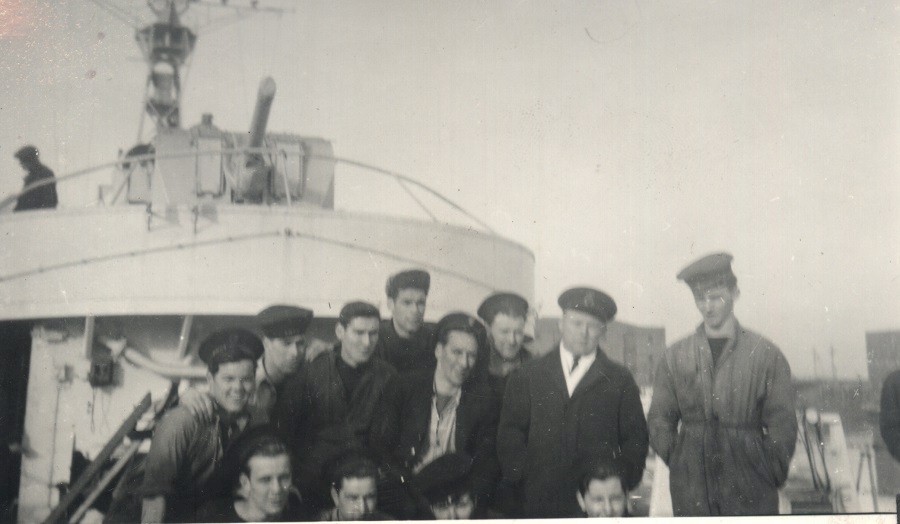 (JHLF029) Joseph Henri Lionel Forget - 2nd from left - with shipmates on HMCS TEME K458 // Lou Burton - standing - 4th from right (JHLF030) Joseph Henri Lionel Forget (back row 4th from left) with shipmates on HMCS TEME K458 (JHLF031) HMCS TEME, shortly after she was torpedoed on 29 Mar 1945