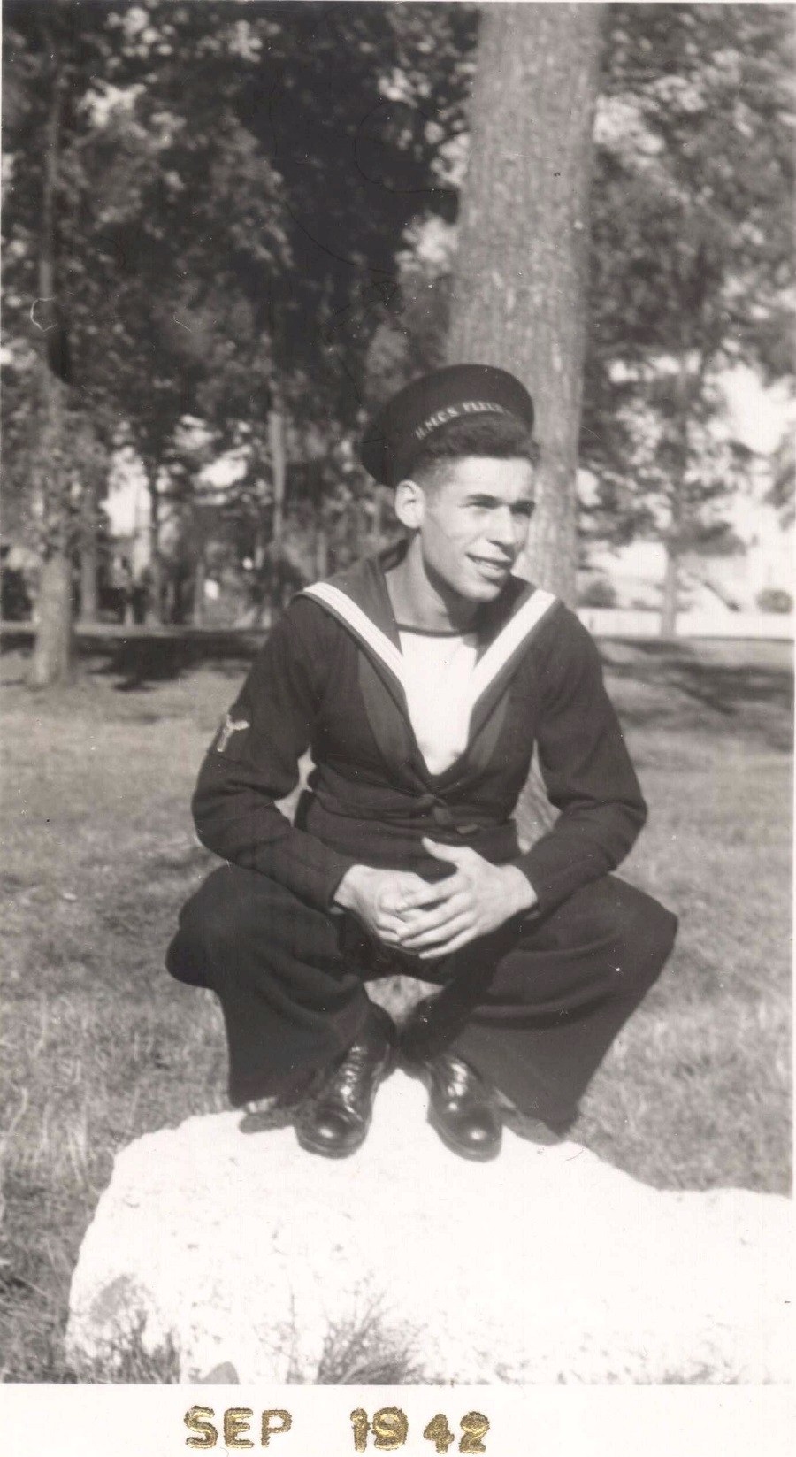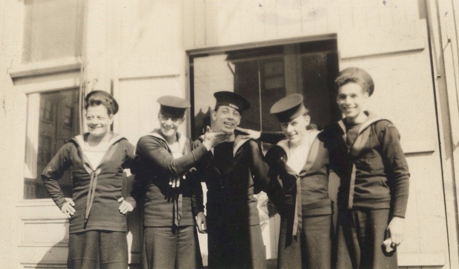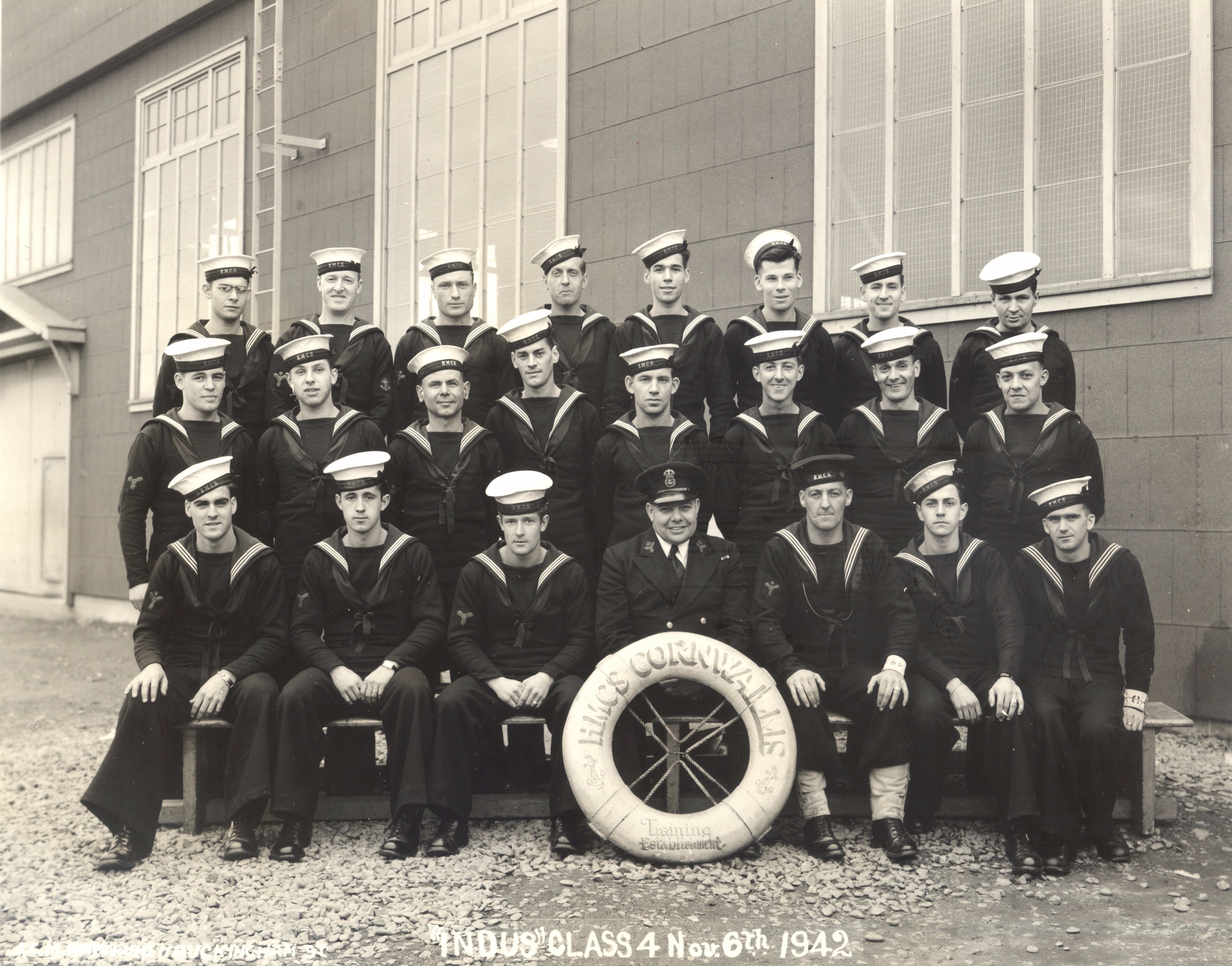 (17) HMCS Cornwallis "INDUS" Class 4 - 06 Nov 1942. Joseph Forget, Back Row, 4th from right (18) Lionel with friends/shipmates (19-20) Lionel Forget (21-24) Lionel's jacket patches - one RCN, two RCNVR and one from HMCS SKEENA