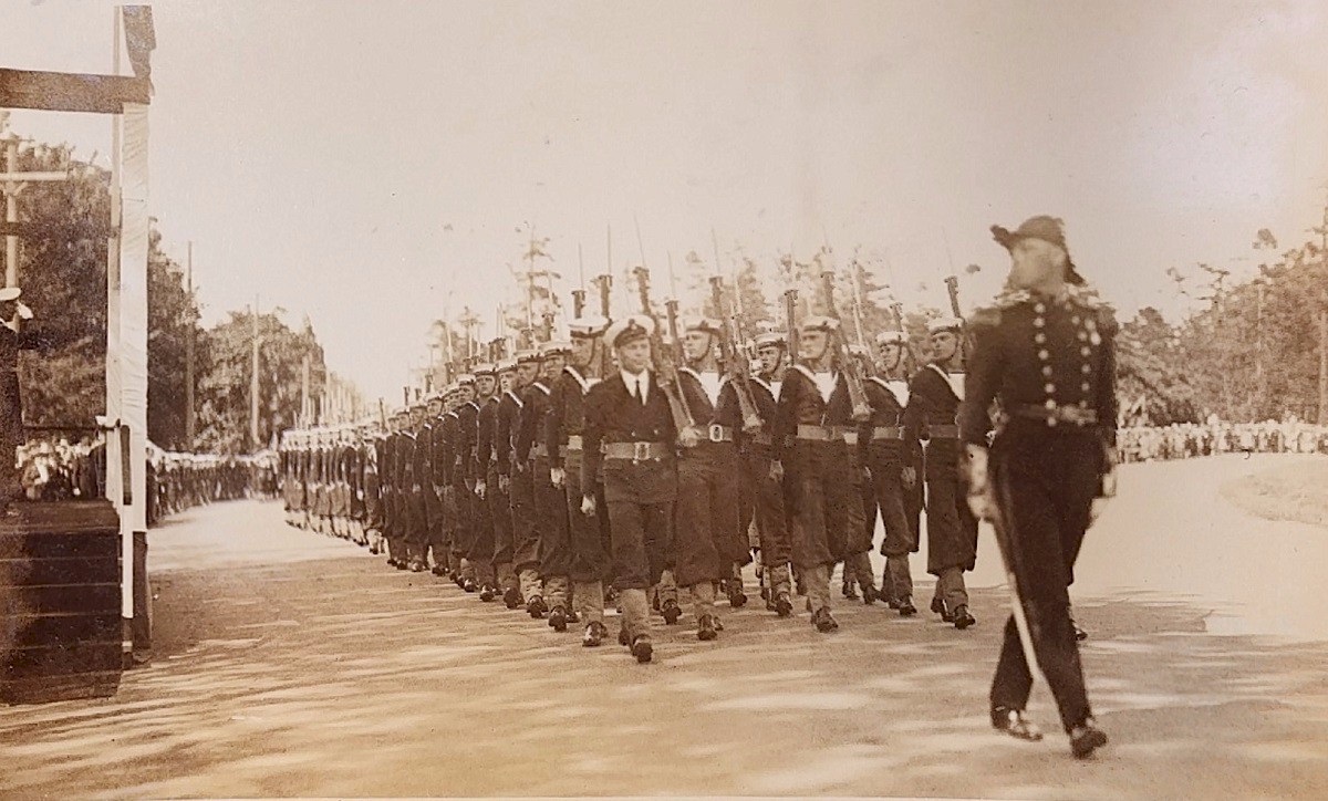 (1) John Clarke while drafted to HMS Excellent, Whale Island, Portsmouth, U.K. (2) Service Summary (3) His Majesty the King takes the salute - Royal Tour 1939, Esquimalt / Victoria, BC (4) His Majesty King George VI and Queen Elizabeth - Royal Tour 1939, Esquimalt / Victoria, BC