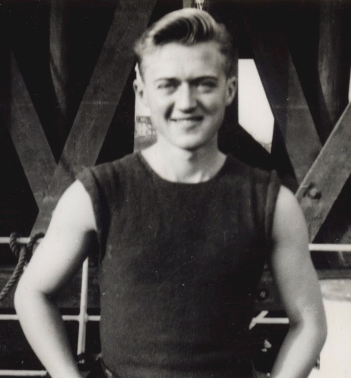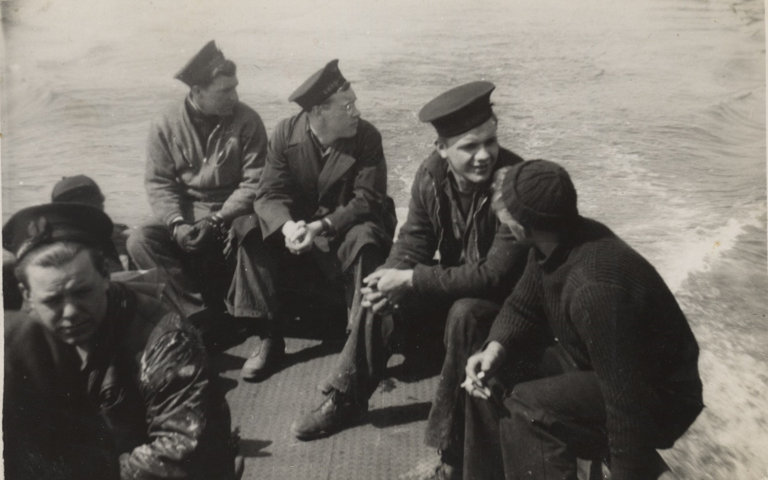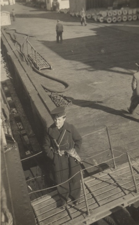 (right) William Connor on the quarterdeck of HMCS St. Boniface J332 Ships served in: