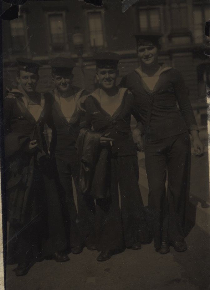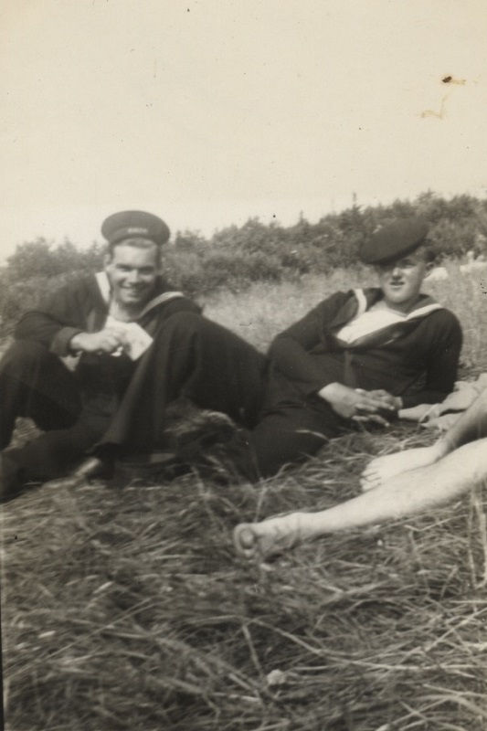 (17) Unknown sailors (18) Unknown location (19) Unknown sailor (20) Sailors on foc's'le of a minesweeper (21) Unknown people / location (22) Unknown sailor (23) Entrance to St. John's, Newfoundland (24) William Connor (right) - other sailor unknown