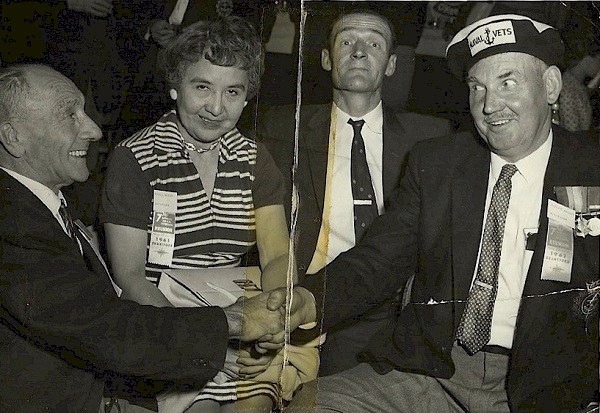 (1) MTE course at HMCS Cornwallis, Howard Bakody instructor (2) Names on back of photo #1 (3) MTE course at HMCS Cornwallis circa 1945, CERA Howard Bakody instructor (4) Engineers at HMCS Cornwallis. CERA Howard Bakody - back row, 3rd from left (5) Howard Bakody (right) at a veterans reunion - others in photo unknown