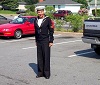 (1) David Bakody wearing his old RCN uniform with HMCS Bonaventure cap tally for a Bonaventure reunion.  (2) (L-R) LCdr Bill Gard, PO2 George LeBlanc, CPO2 ER David Bakody at MTE (Mechanical Training Establishment), part of Fleet School Halifax