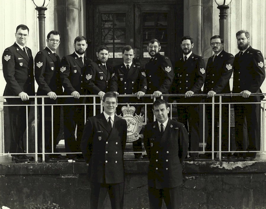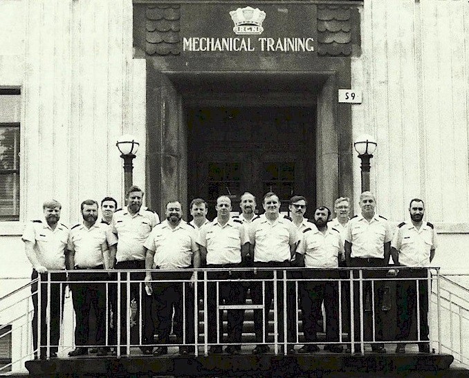 (3) QL6 Class CFFSH (Engineering Division) aka MTE  -  LT (N) Quathamire and CPO2 ER David Bakody.  Back row (L-R) (1) Dave Newcombe  (2) ??  (3) ??  (4) Tom Currie  (5) Vic Murphy  (6) Gordie Demille  (7) ??  (8) ??  (9) ??