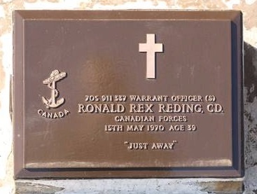 Reding, Ronald Rex, PO1, C.A.F. (Navy), Died - 15 May 1970, HMCS YUKON - Husband of Sanda Reding of Esquimalt, British Columbia; son of Mrs. June Matilda Clifton of Langley, British Columbia.