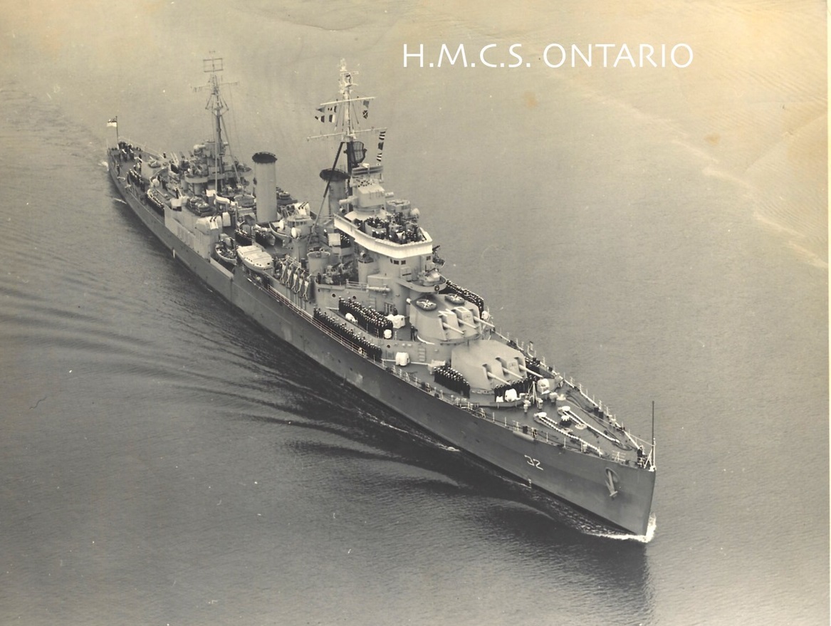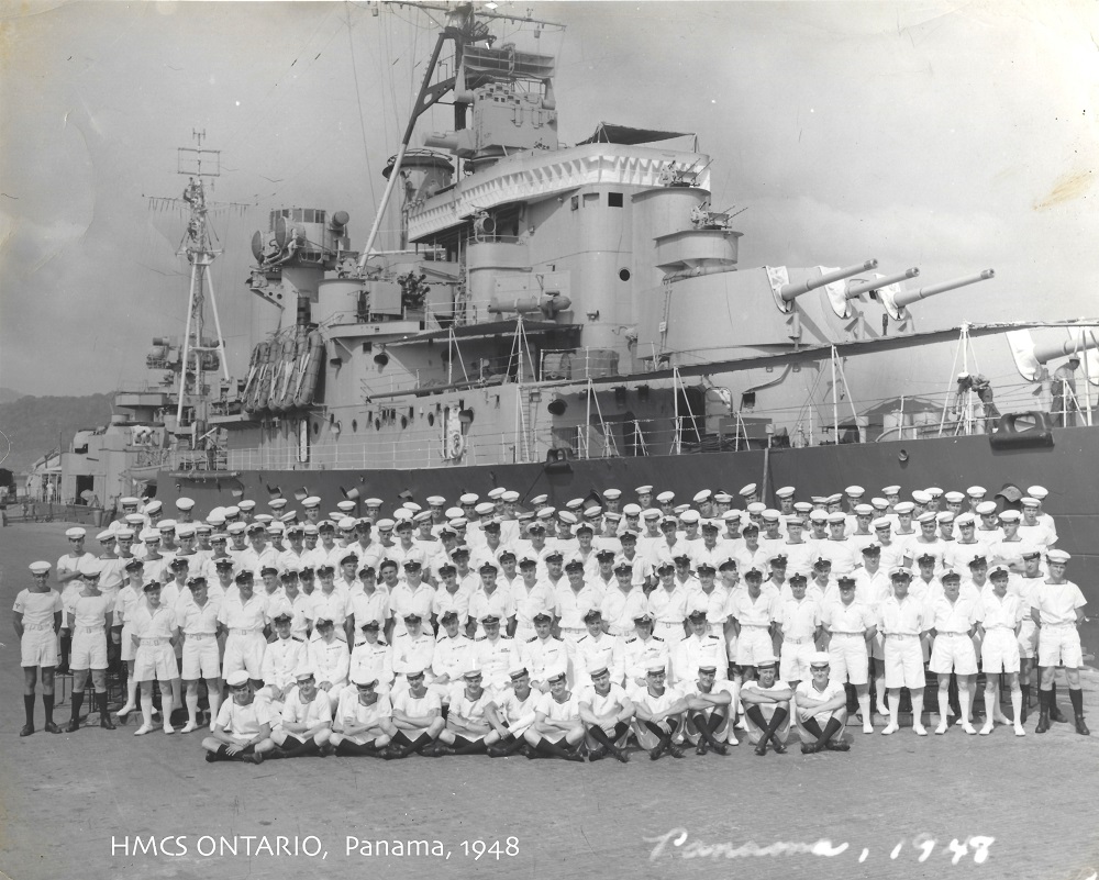 This photo is also posted on the ship's company photo page for HMCS ONTARIO with crew numbered for identification