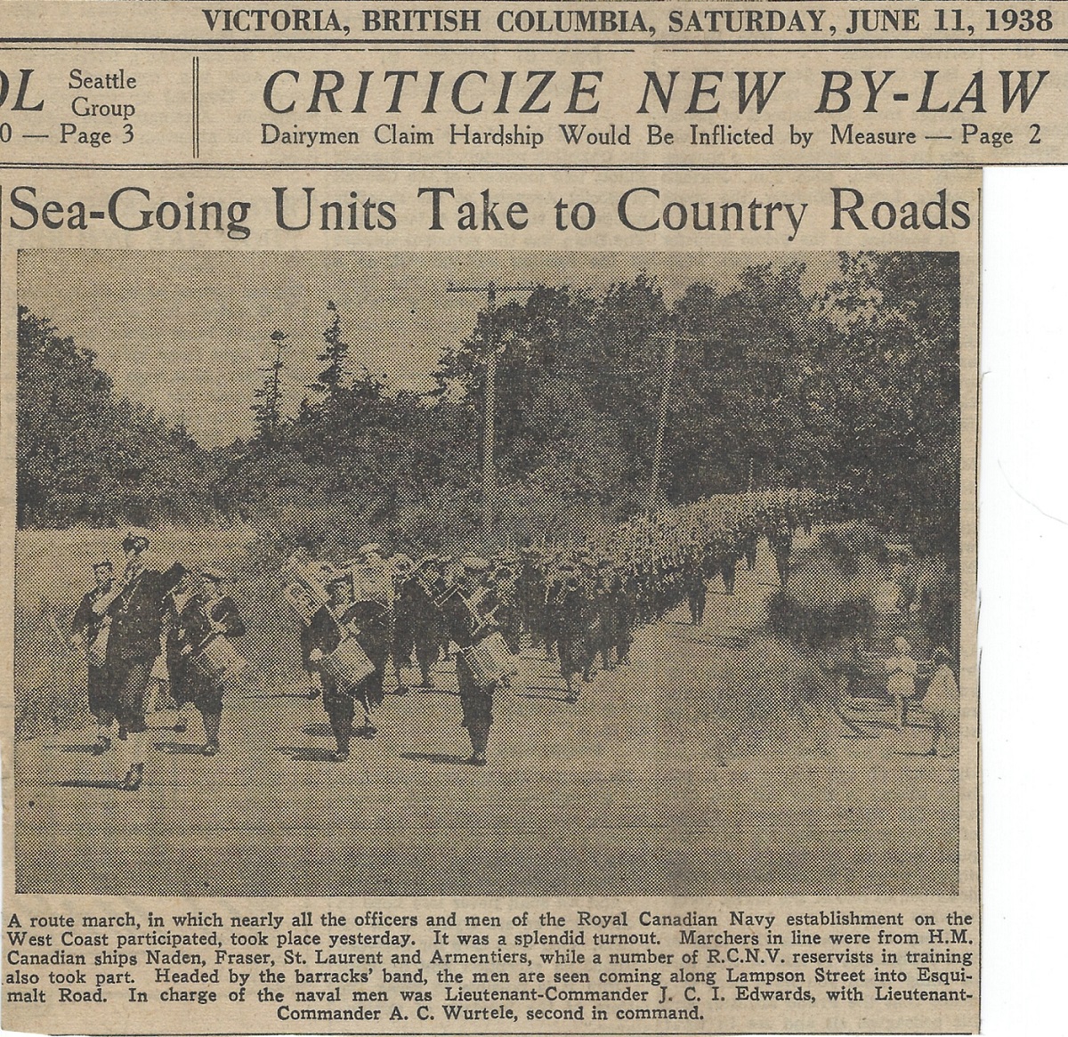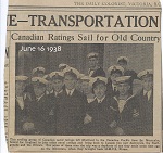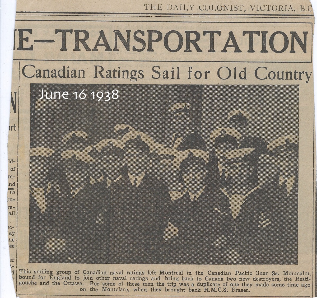 (WC06) "A good day at sea" - possibly on HMCS Crusader (WC07) PO Wes Clark (2nd from right) and friends/shipmates (WC08) 1938 newspaper article on the west coast fleet performing a Route March (WC09) 1938 newspaper article on RCN sailors heading to England on the liner S.S. Montcalm to man HMCS RESTIGOUCHE and HMCS OTTAWA - recently acquired by the RCN