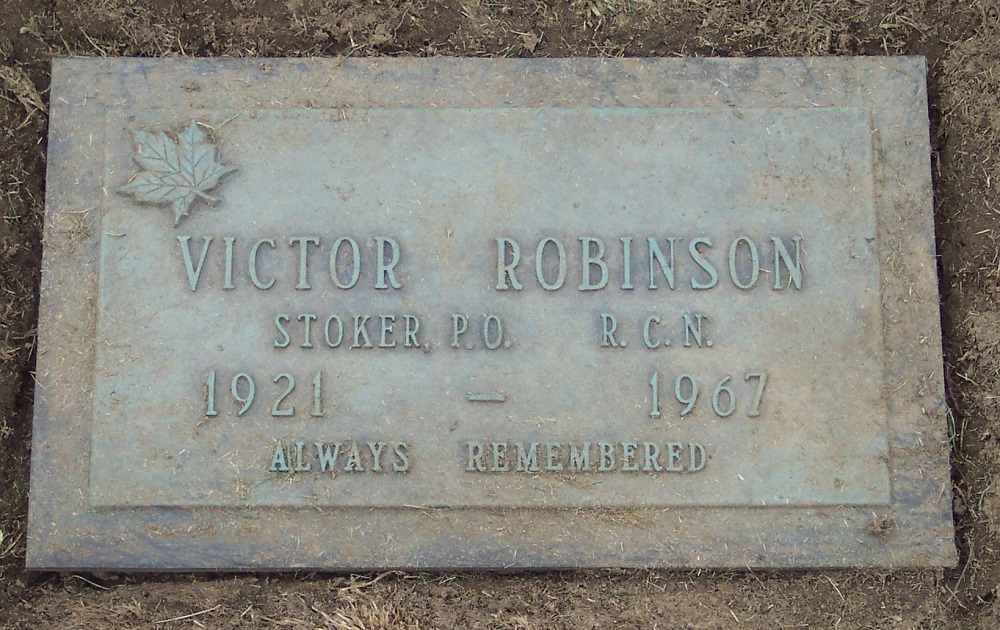Of South Burnaby, BC. Died 24 Mar 1967 as the Shaughnessy Military Hospital. Son of Thomas Robinson and Adelaide Brown, both born England. He is survived by his wife the former Florence Jean Brisco. After the war he served in the Vancouver Police Department for 22 years as a detective. Victor was buried in the Forest Lawn Memorial Park Cemetery, Burnaby, BC on 28 Mar 1967.