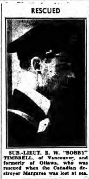 Article on SLt Timbrell surviving the sinking of HMCS MARGAREE