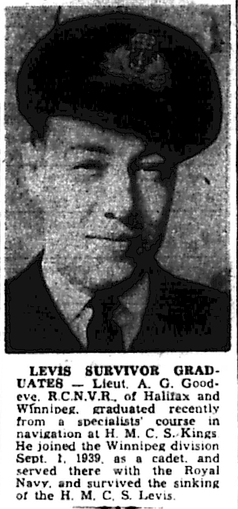 Article on Lt Goodeve graduating from the Navigators Course at HMCS Kings The Halifax Chronicle 26 Apr 1943 Article researched by / courtesy of George Newbury