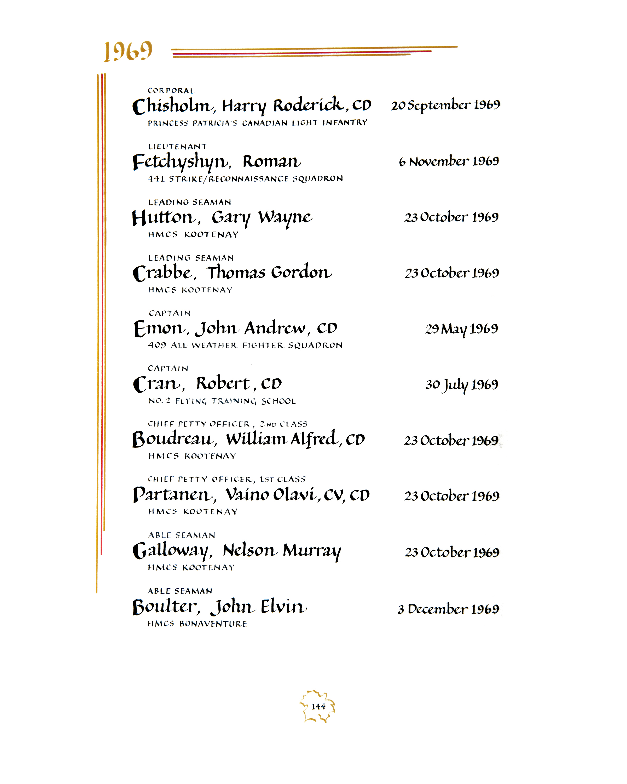 On 03 Dec 1969, during the ship’s paying off cruise, the aviation fuel tanks (AVGAS) on HMCS BONAVENTURE were required to be emptied and cleaned. Tragically, one fuel tank did not vent properly, and the first two sailors who entered the fuel tank were overcome by deadly fumes. A second pair of sailors lost their lives during the rescue attempt.